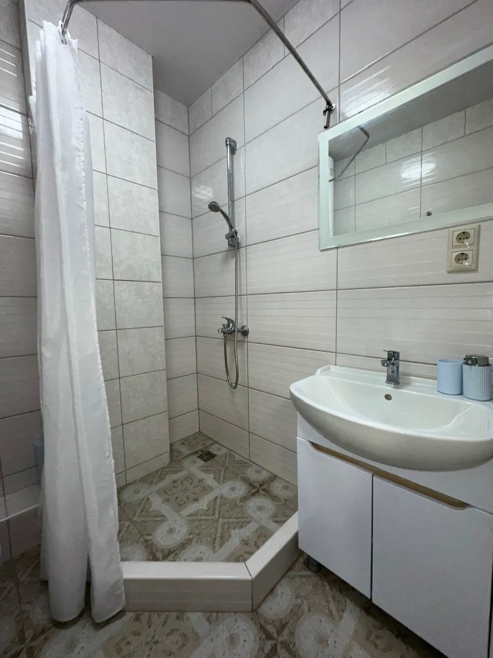 В номере расположены две широкие кровати (совмещены), двухспальный диван-кровать, холодильник, ТВ, сплит-система, санузел (душ, умывальник, унитаз). S 28 кв.м. № 3 2 эт.