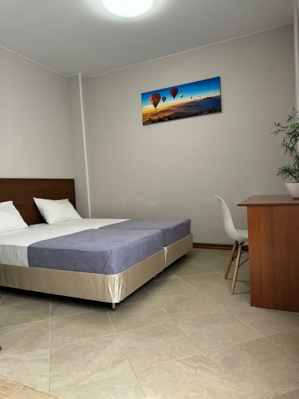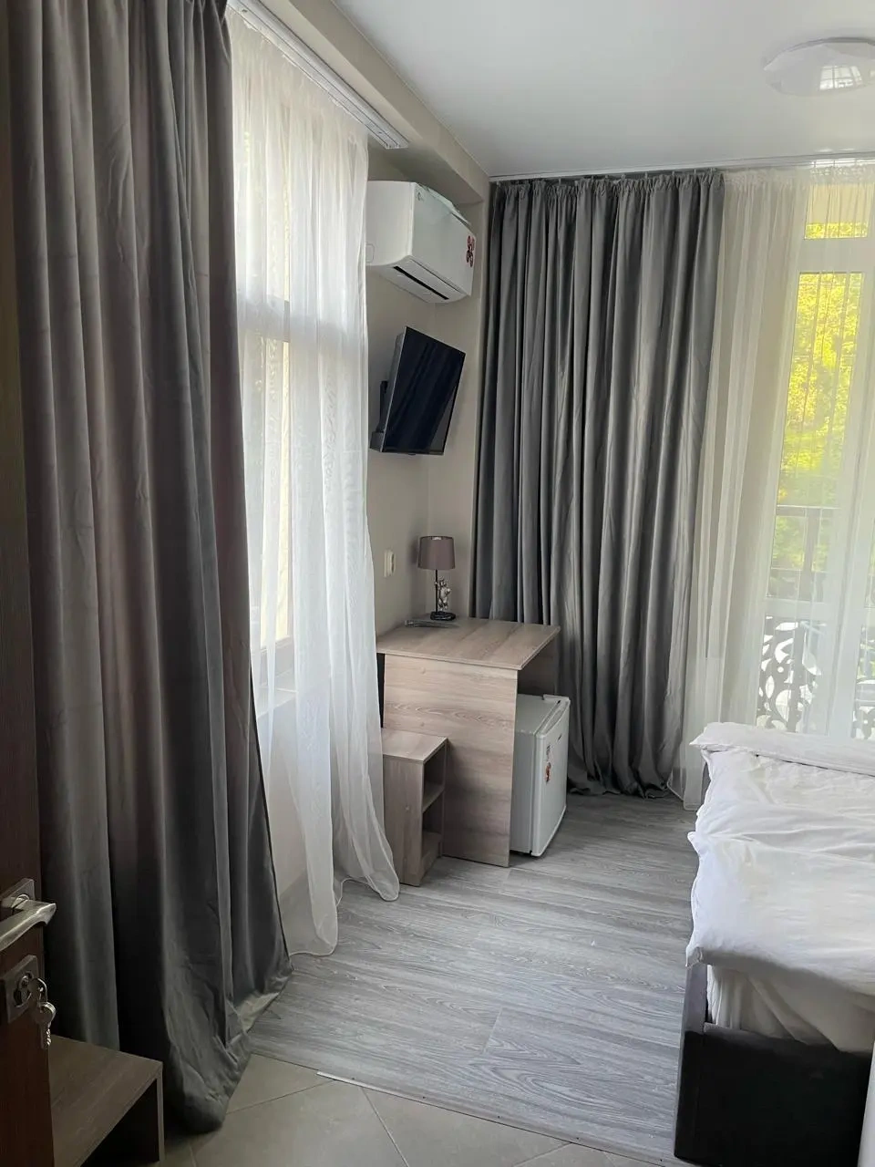 В номере расположена двухспальная кровать, балкон, холодильник, ТВ, сплит-система, санузел (душ, умывальник, унитаз). S 15 кв.м. № 4 2й эт.