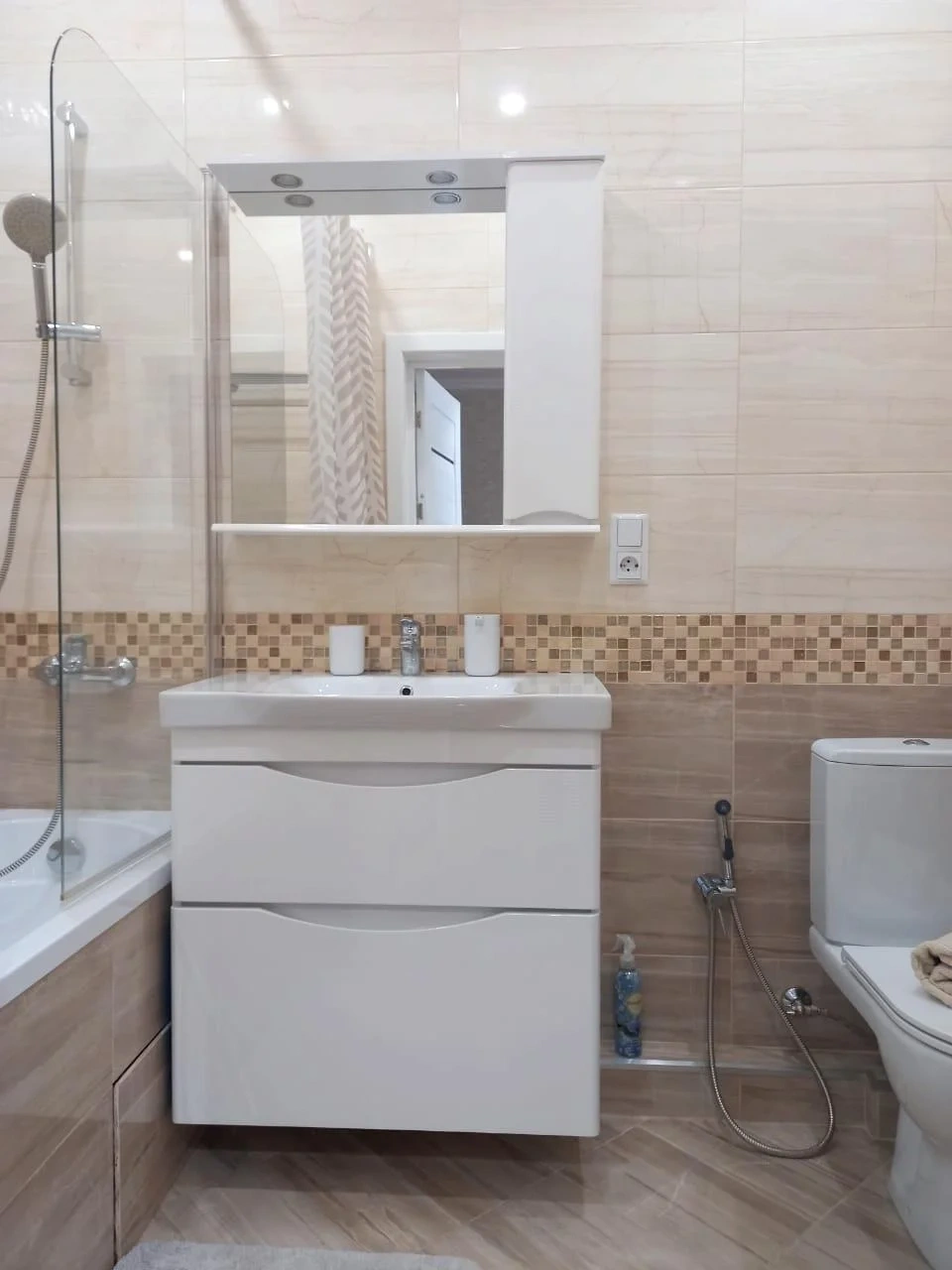 Совместный санузел, фен. Ванные принадлежности (шампунь, гель для душа, мыло, полотенца);