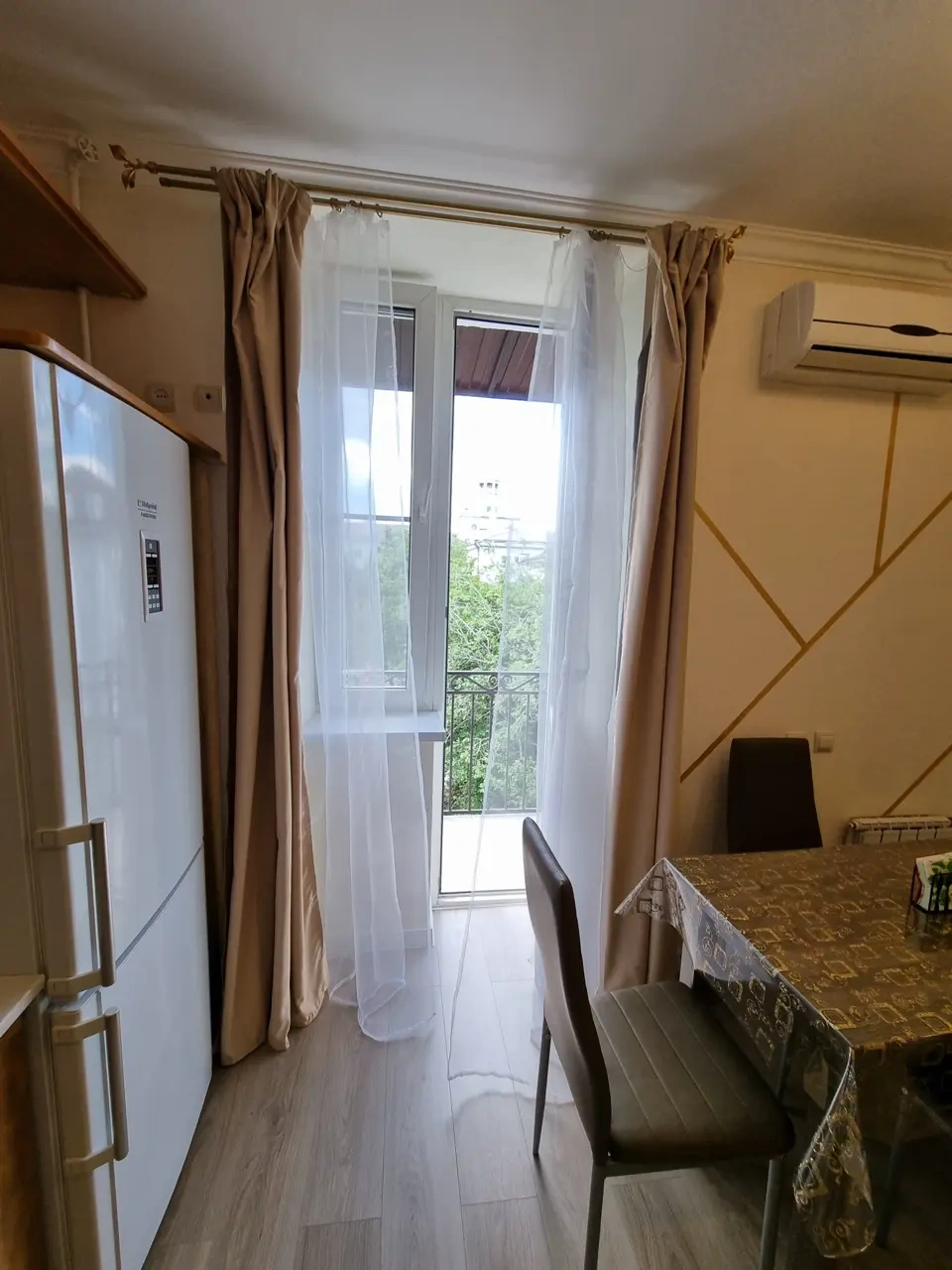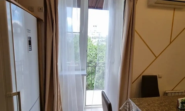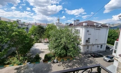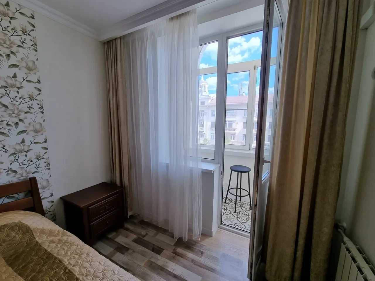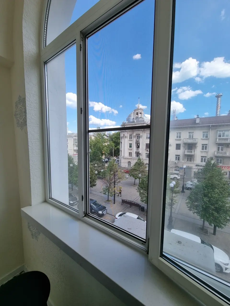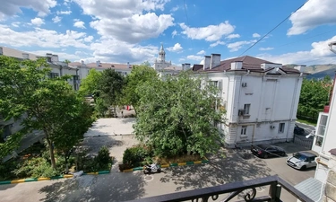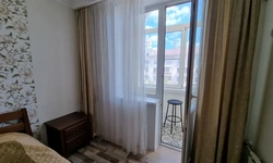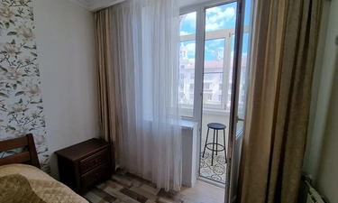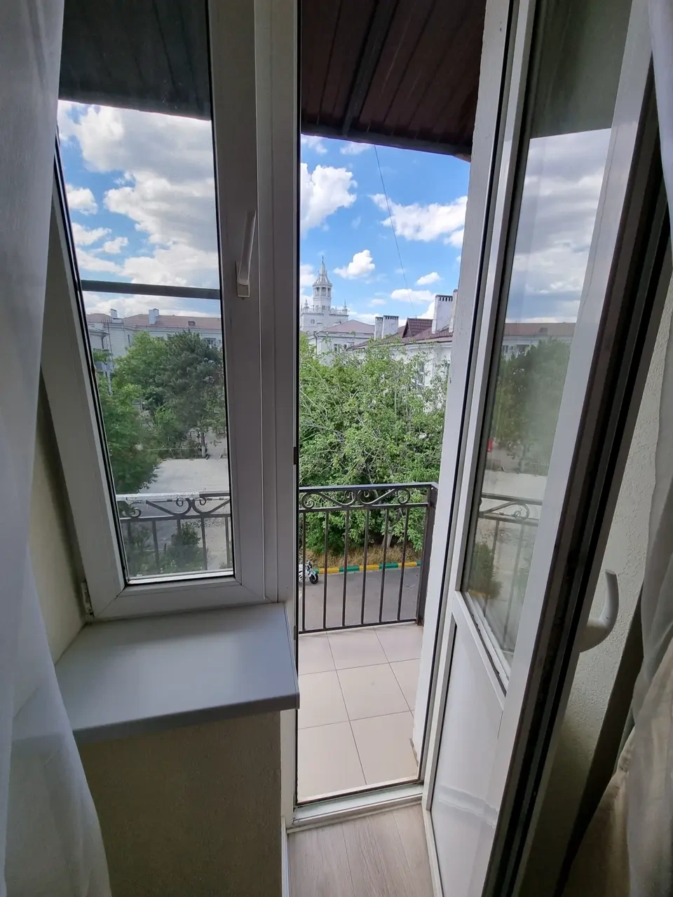 Из спальни можно выйти на лоджию. Арочное окно лоджии выходит на платановый бульвар, мощёный брусчаткой. С наступлением темноты на бульваре загорается красивая иллюминация.