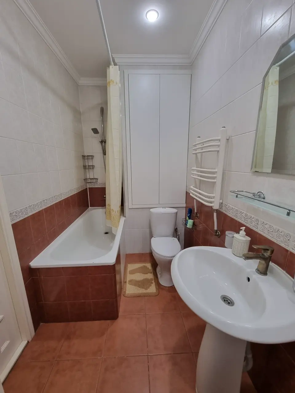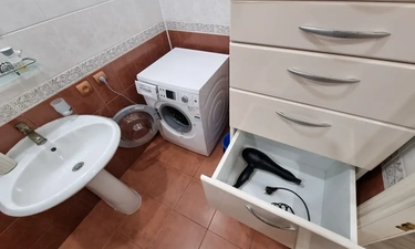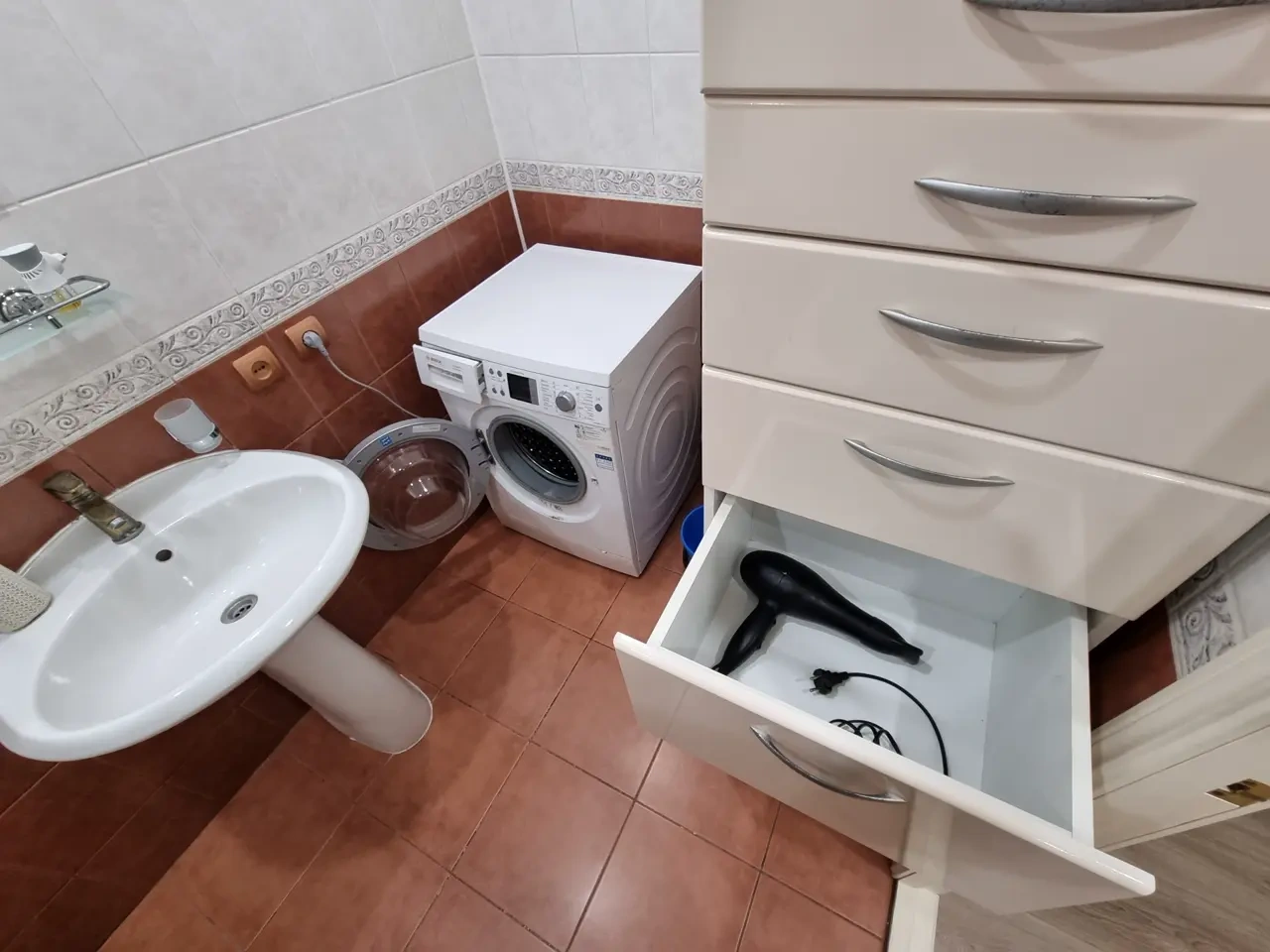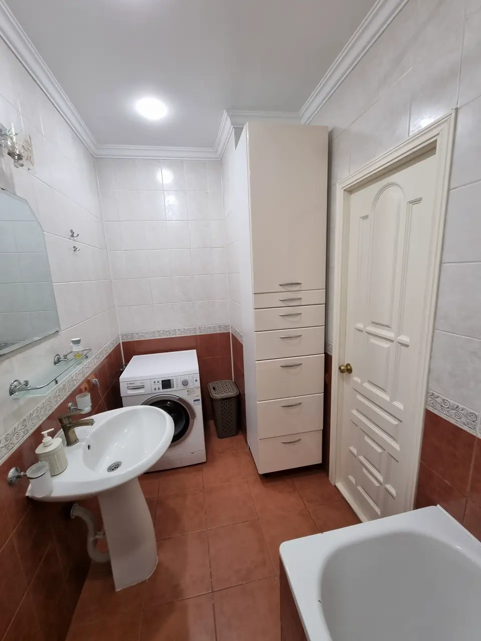 Санузел совмещенный. Имеется полноценная ванна 180 см в длину и большая стиральная машина.
