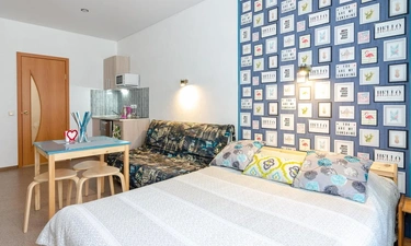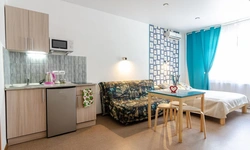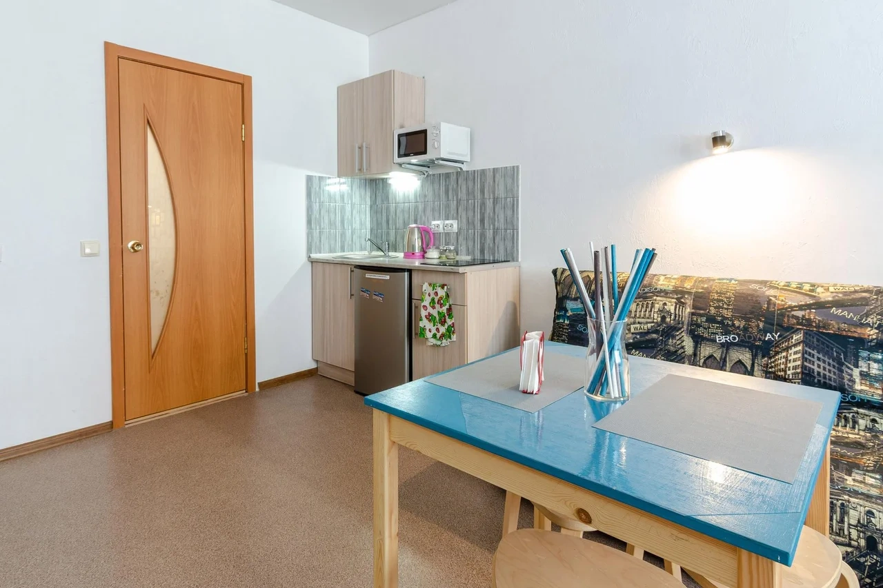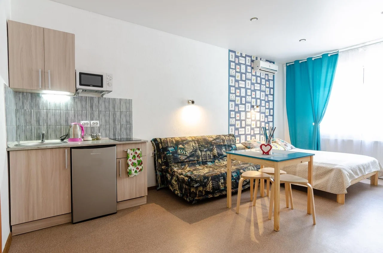 Полный набор принадлежностей : микроволновка, электрочайник, стиральная машинка, жидкое мыло, фен , туалетная бумага и много нужных мелочей!