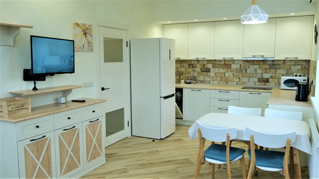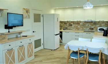 Новые уютные апартаменты в шаговой доступности от центра с качественным дизайнерским ремонтом. Полностью оборудованы всем необходимым для комфортного проживания от 1 до 5 человек. Отдельная спальная 15м.кв с полноценной двуспальной кроватью и удобной раскладной односпальной , большим гардеробом и рабочим местом, кондиционером и смарт TV. Кухня-гостиная 20 кв. м. с диваном-кроватью (спальное место 150/200, есть топпер для дополнительного комфорта). Кухня оборудована всем необходимым - посудомойка ,духовка, стеклокерамическая плита, большой холодильник, микроволновка, тостер, блендер, чайник, вся посуда. Кондиционер и смарт телевизор, бесплатный интернет. Рядом с домом Пятёрочка, Магнит, аптека, 10 минут пешком до ТРЦ Красная площадь, Бон Пассажа, 35 мин. до морского вокзала и центральной набережной Новороссийска. Удобный выезд из города к чистым пляжам Широкой балки и в Абрау-Дюрсо, а также в сторону Геленджика и Анапы. У нас очень чисто и уютно, после каждых гостей проводим генеральную уборку. Приезжайте, будем Вам рады.