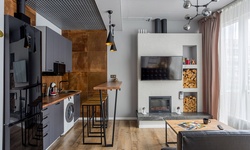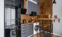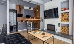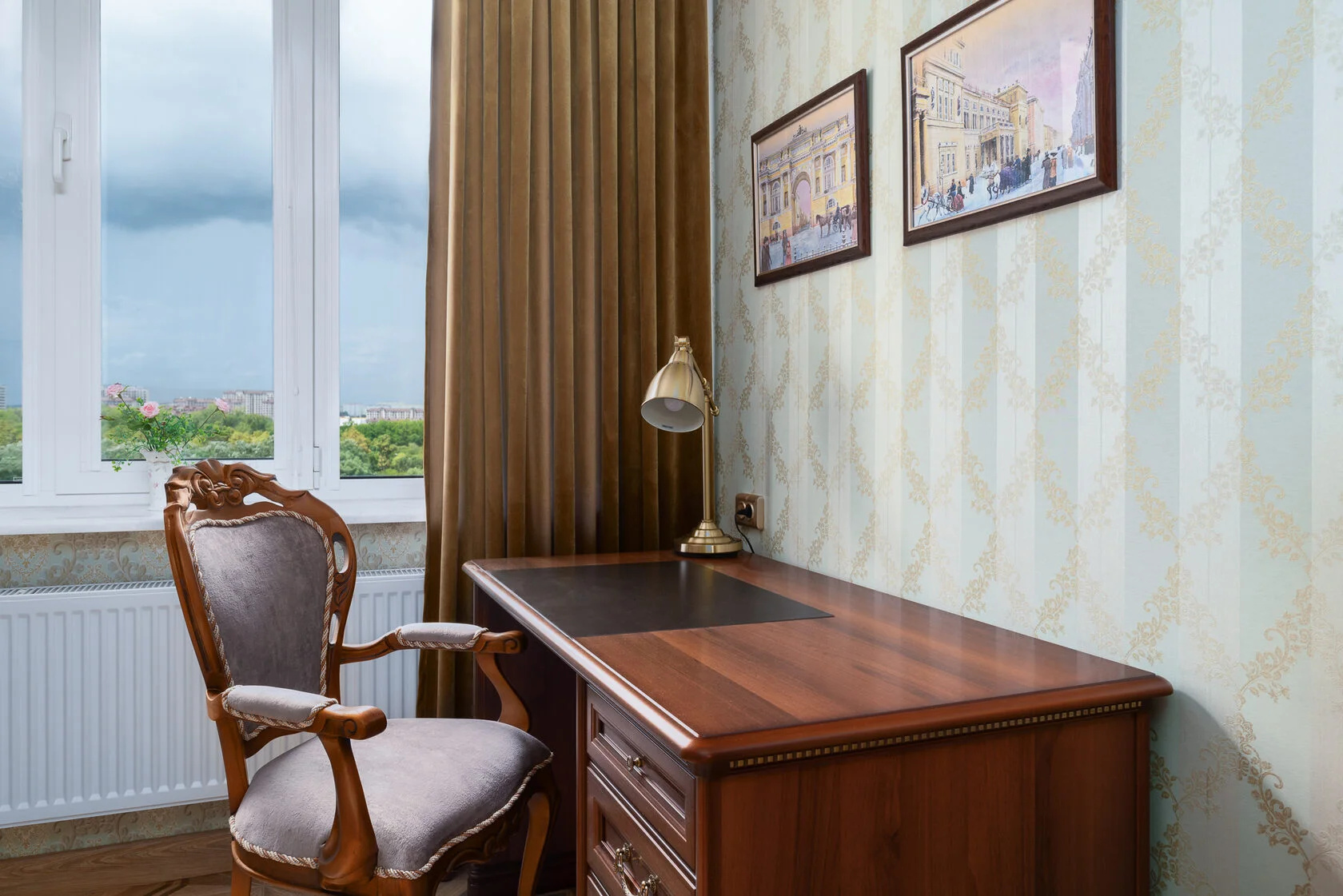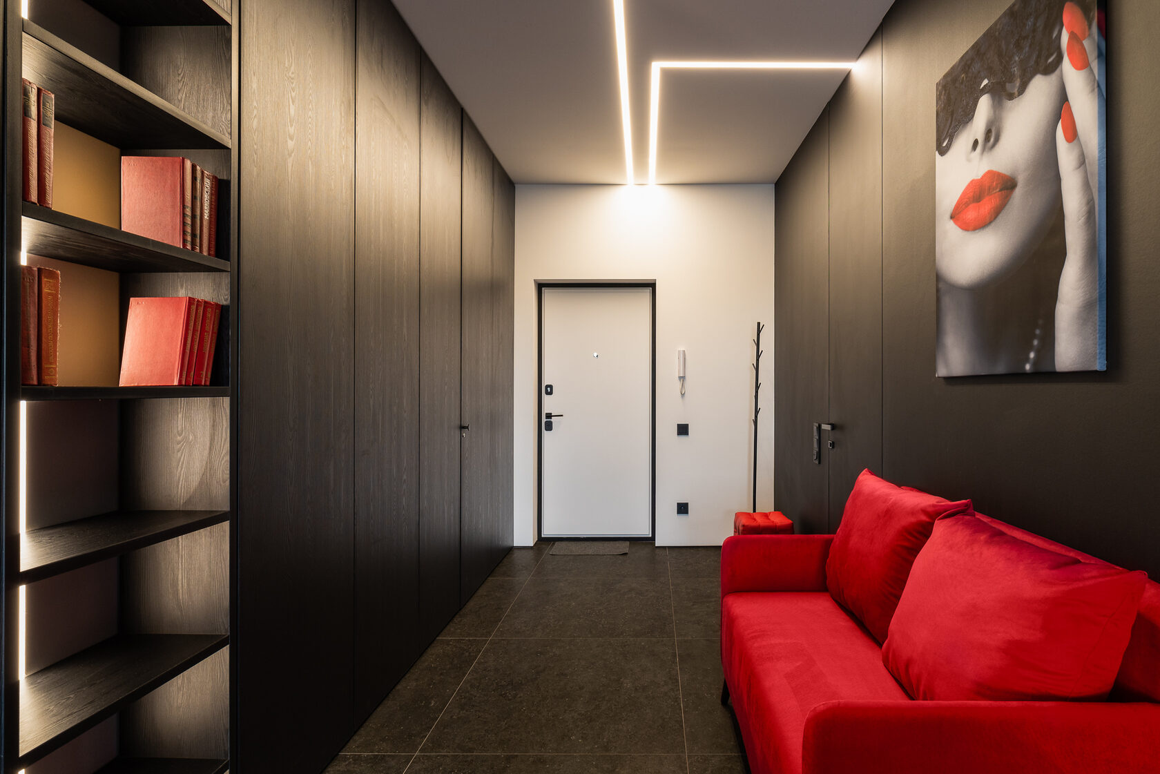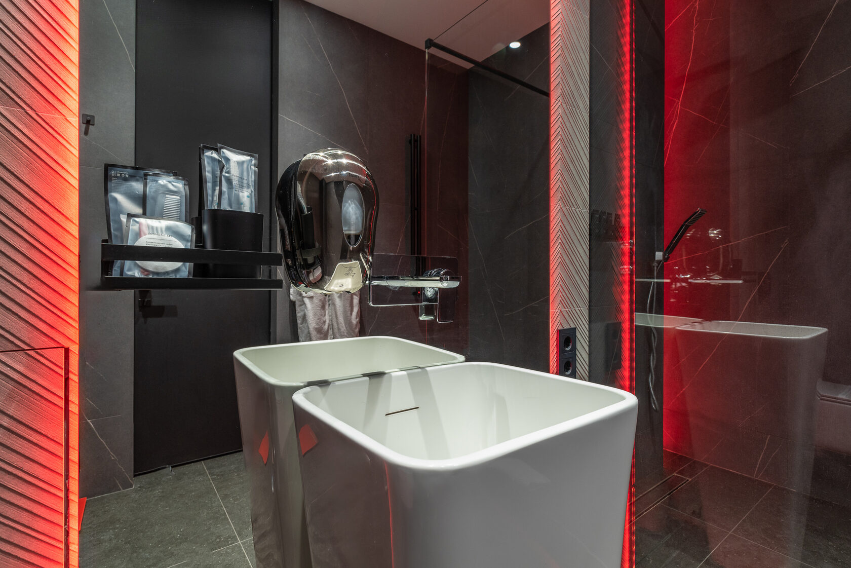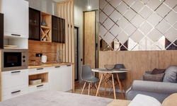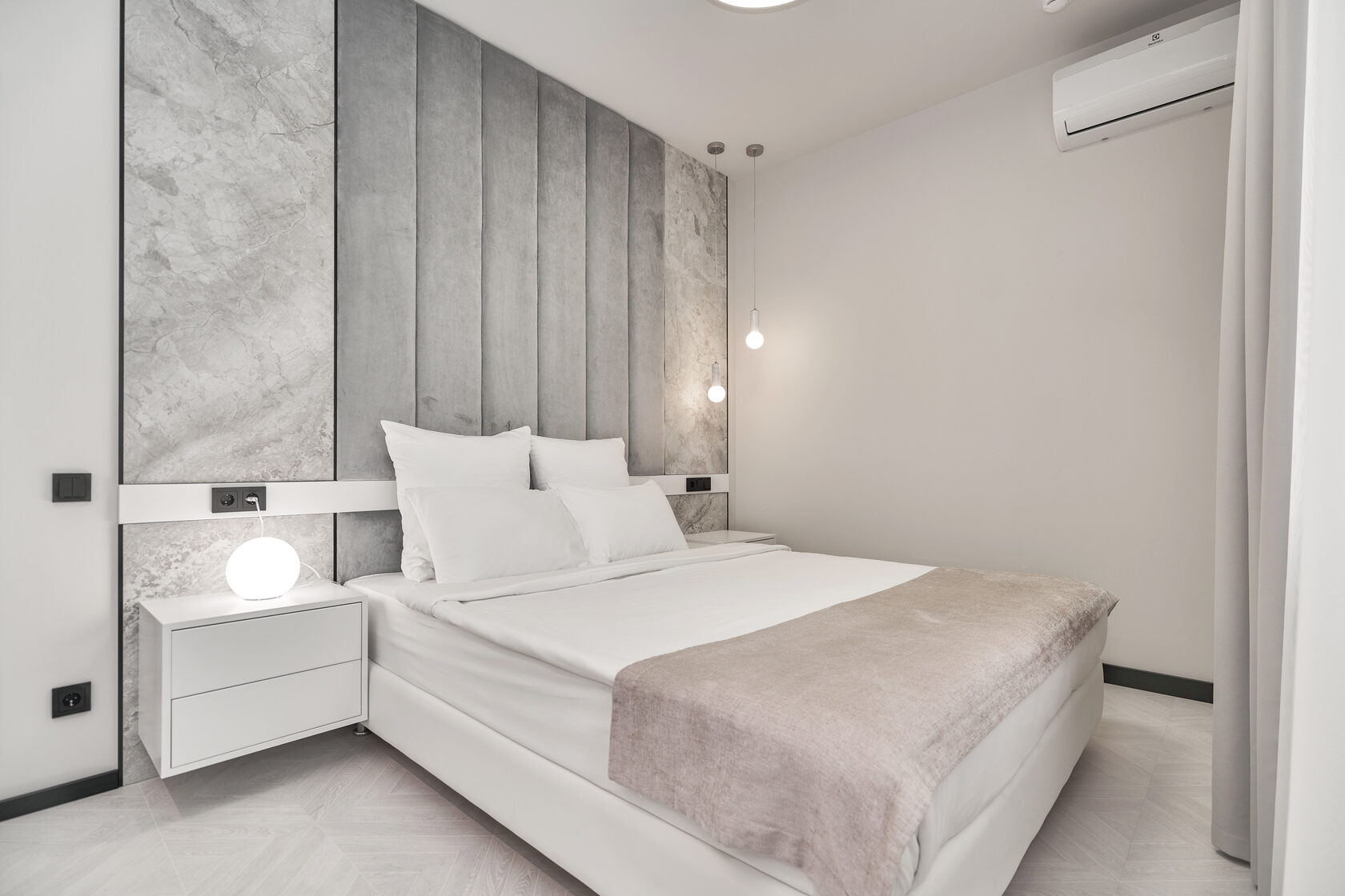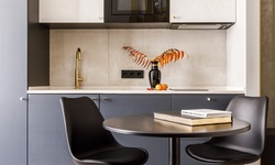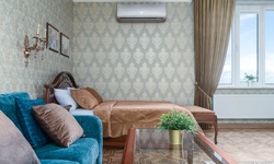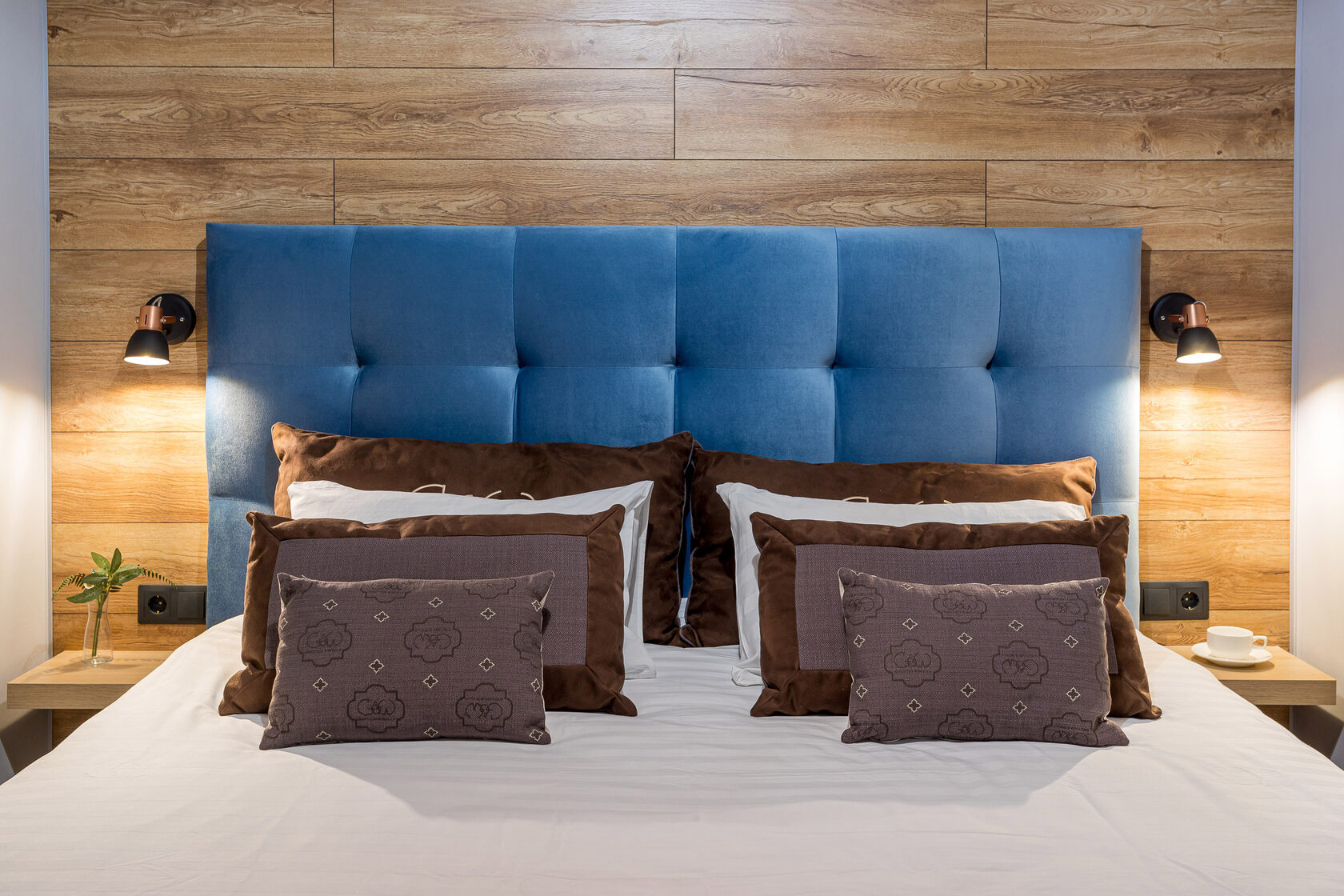 Апартаменты оформлены в современном стиле, в приятной цветовой гамме. Оборудованы мини-кухней со встроенным холодильником, микроволновой печью, варочной поверхностью, вытяжкой, есть кофе-машина и электрочайник. Имеются все необходимые кухонные принадлежности. Для удобства гостей в апартаментах есть гладильная доска, утюг, фен, халаты, одноразовые тапочки, туалетно-косметические принадлежности. Кроме того, для вашего удобства, есть телевизор с большим экраном и доступом к большому количеству каналов, Wi-Fi.