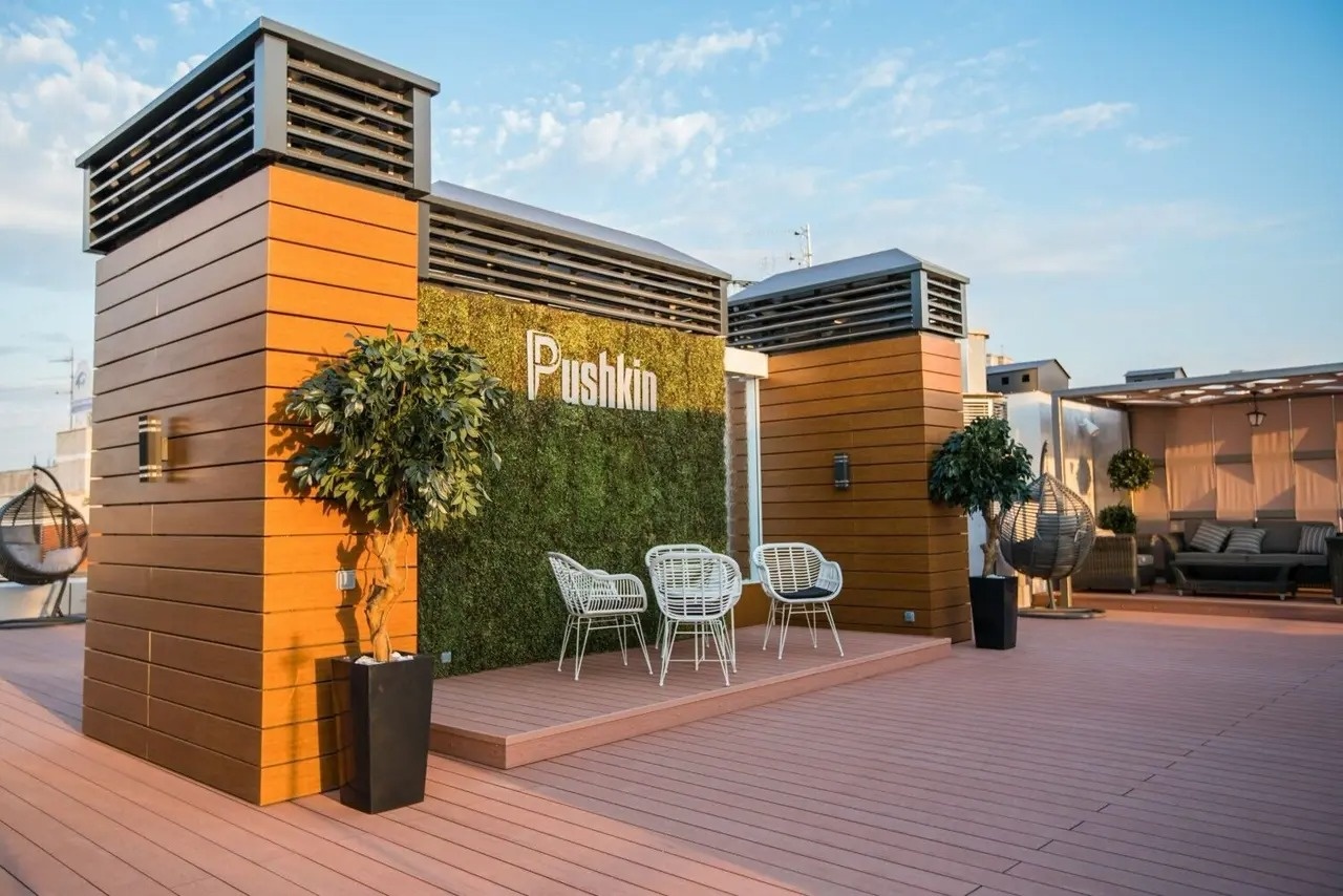 Великолепная двухуровневая терраса на крыше не оставит гостей равнодушными.