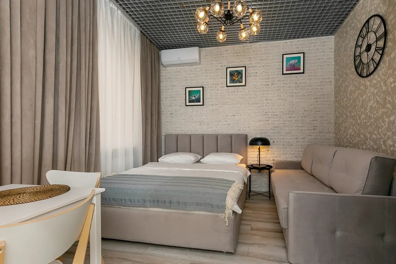 Отличные апартаменты в центре Краснодара! Все стильно и со вкусом. Есть кофе машина. Очень аккуратные работники, всегда интересовались что нам не хватает, воды или чая или нужна ли уборка. При выезде нужно было оставить вещи на пару часов, свободно оставили. Мы довольны, советую данные апартаменты !)