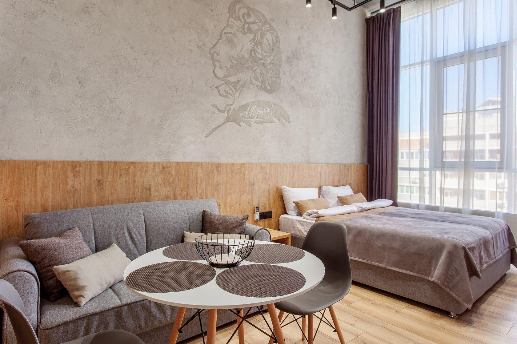 Pushkin Apartments расположены на пересечении улицы Пушкина и Кубанской Набережной, а значит в шаговой доступности от вас будут лучшие рестораны, парки, бизнес-центры и достопримечательности. Проживая у нас, вы находитесь в центре деловой и культурной жизни города.