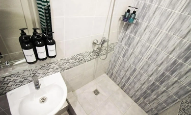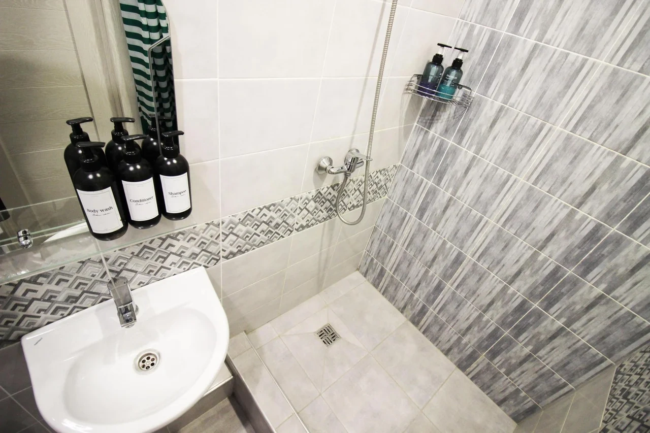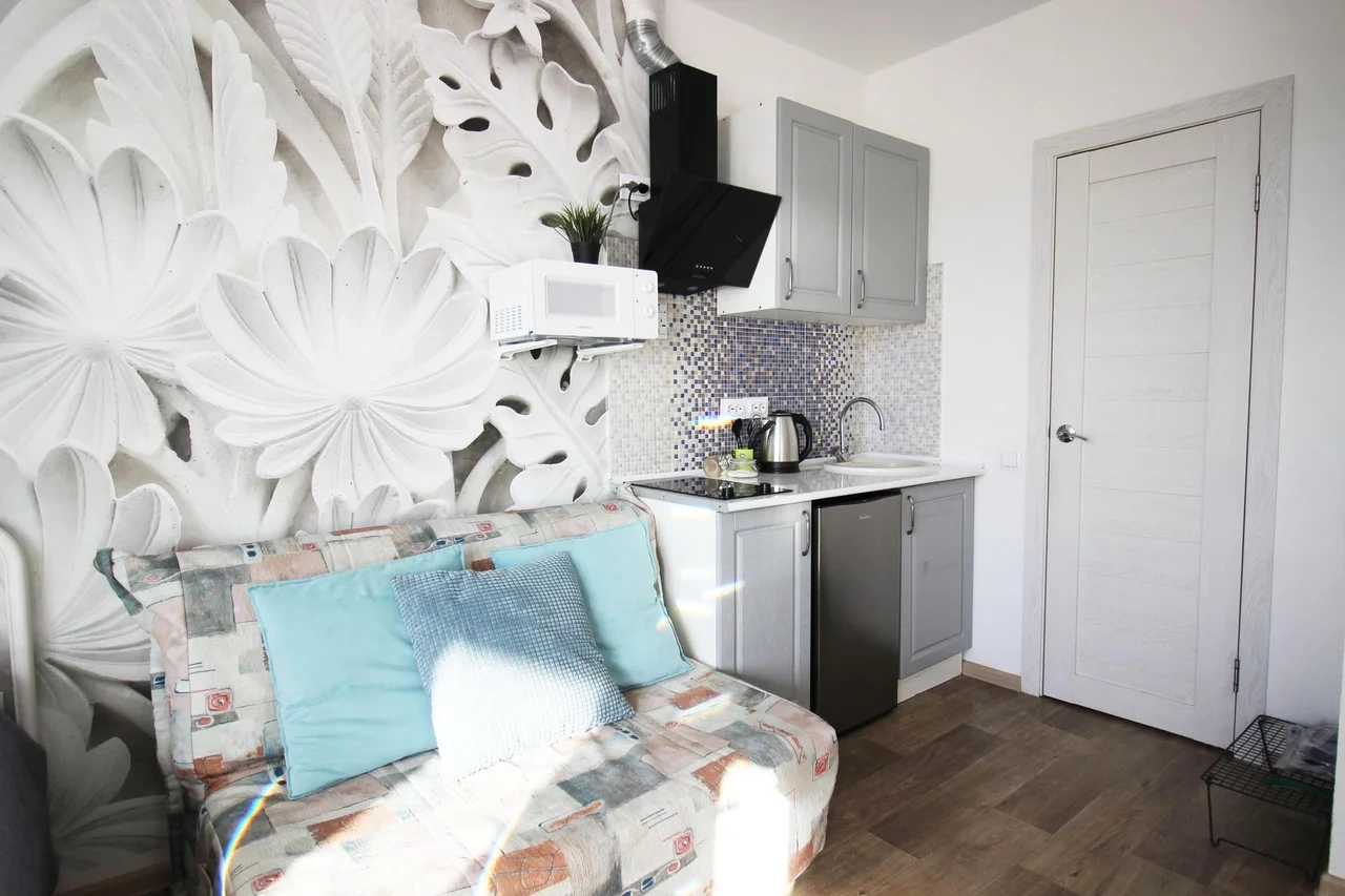 Полный набор принадлежностей : микроволновка, электрочайник, стиральная машинка, жидкое мыло, фен , туалетная бумага и много нужных мелочей!
