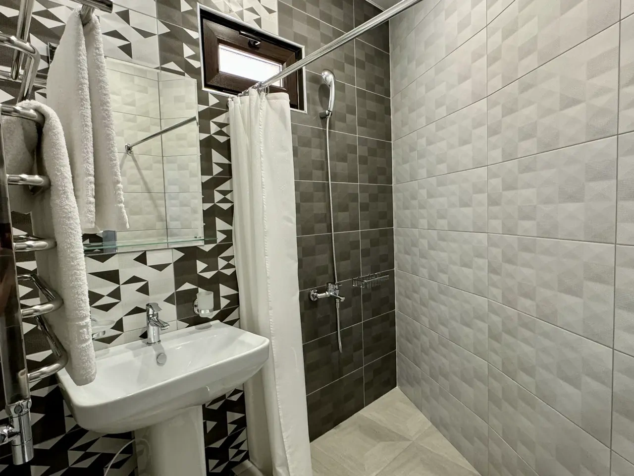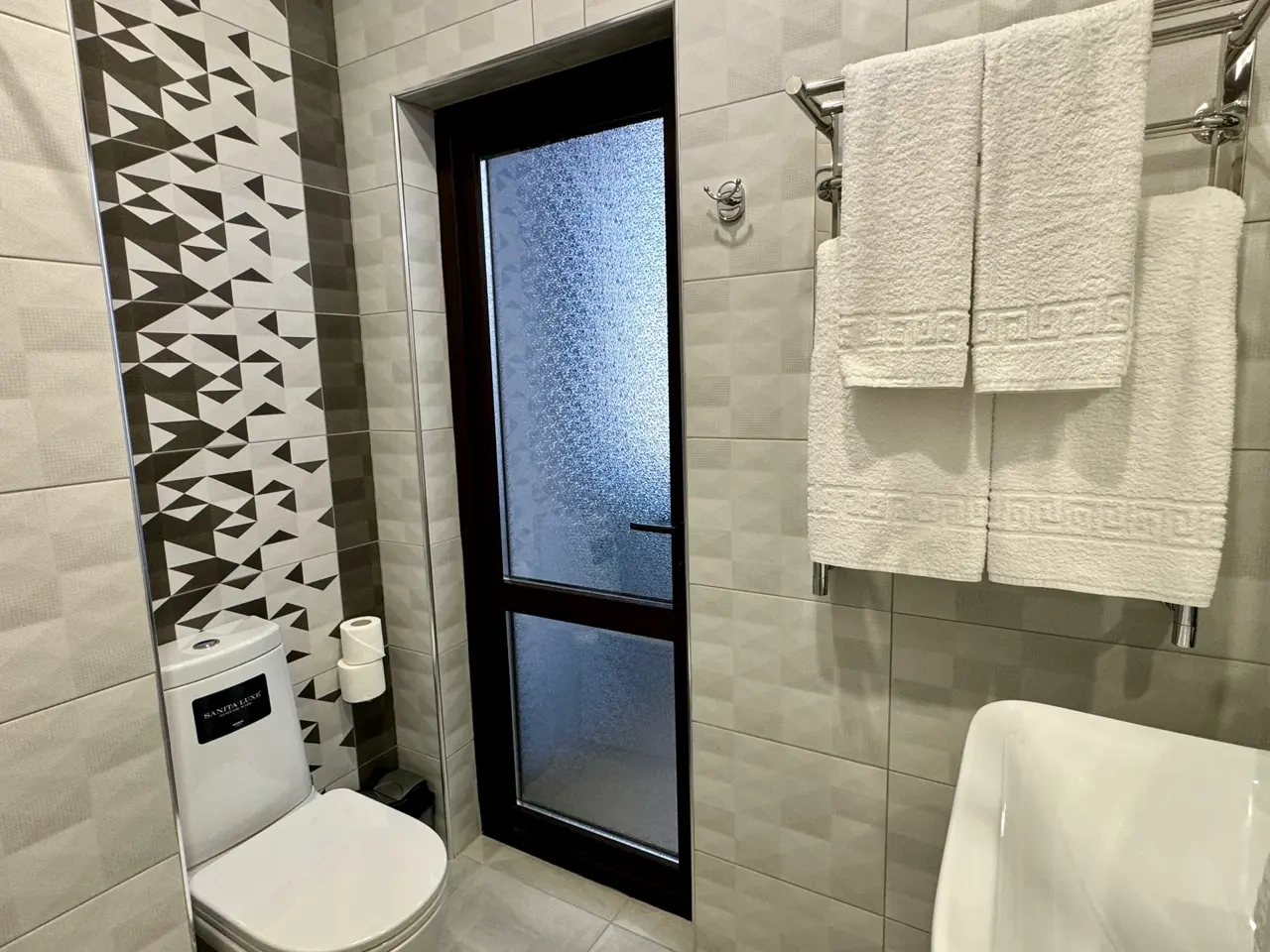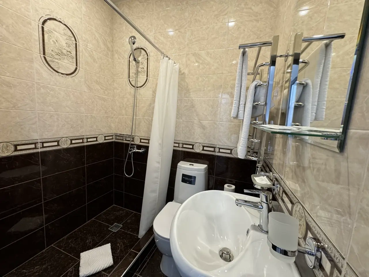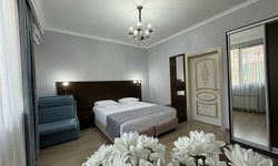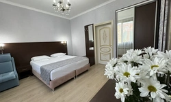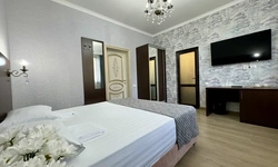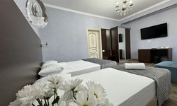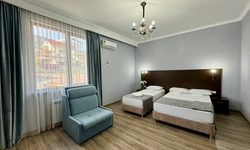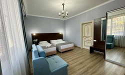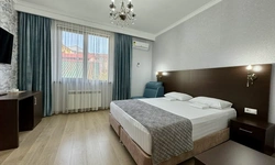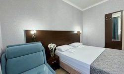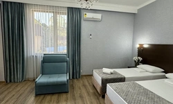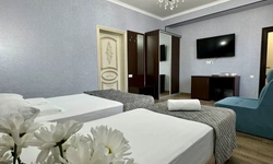За свои деньги- отличный гостевой дом. Номер просторный, все чисто, есть фен, душевой набор. Хорошие полотенца. Номер достаточно просторный. Есть возможность от отеля поехать покупаться в отличный бассейн, уточняйте у персонала. (Там можно здорово провести время- чисто, красиво). Есть общая терраса на каждом этаже.