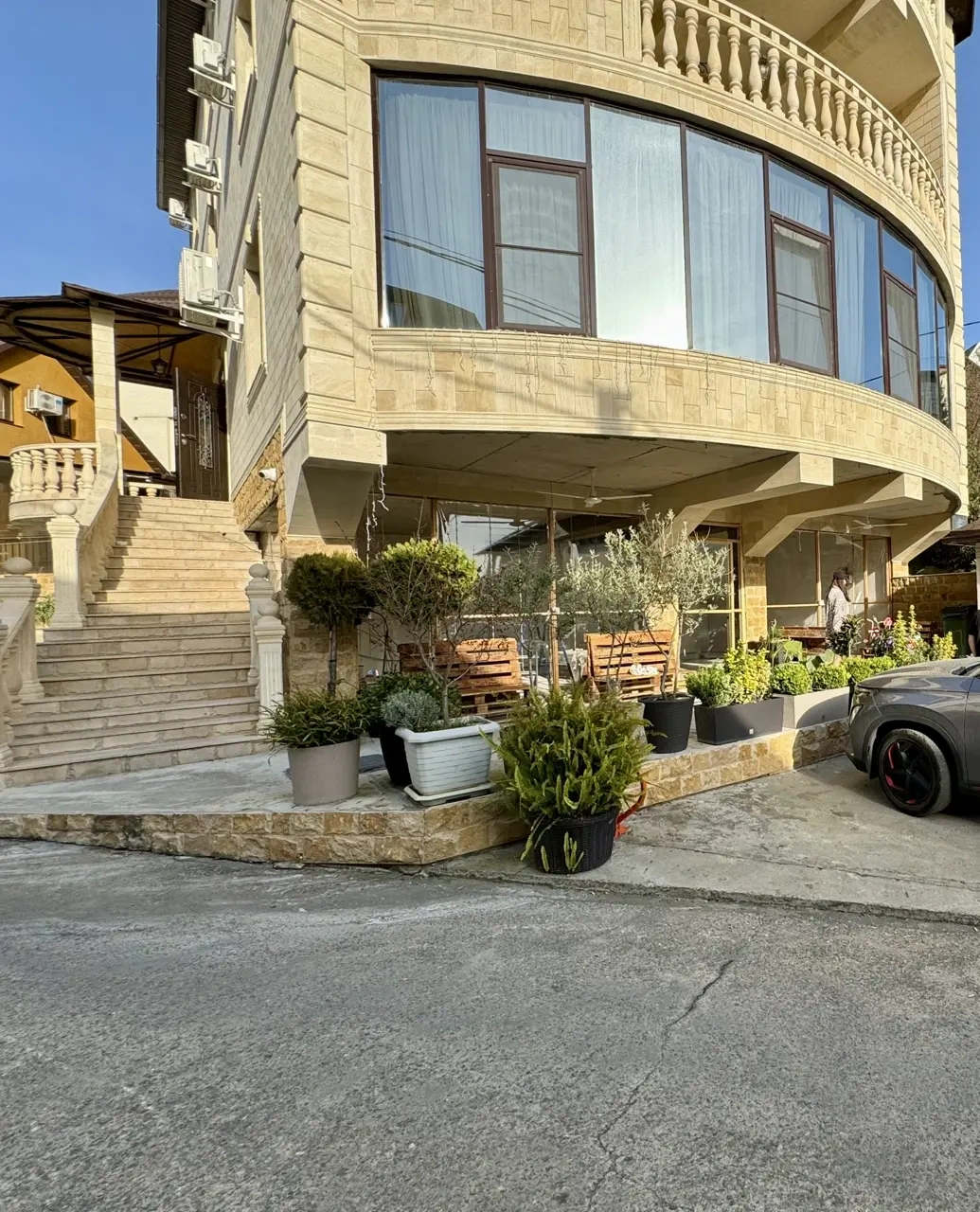 Никому не советую этот «отель». По телефону разговаривали доброжелательно, показалась очень хорошая девушка, обещали бассейн рядом( в соседней гостинице), якобы это тоже их, до моря 10 минут пешком, до вокзала 7 минут пешком. В итоге как только приехали , сказали, что до бассейна 30 минут на машине и плюс он платный 1700 с человека (он относится совершенно к другому отелю и когда мы приехали увидели какой-то лягушатник, в котором миллион людей) , парковки нет (хотя мы предупреждали, что будет 2 машины и нам обещали подготовить место), до моря минут 20-30 на машине . Персонал ходит с недовольными лицами, вечно что-то не устраивает, то машину не так поставили, то стулья громко двигаем, то попросили поменять полотенца хотя бы один раз за 5 дней, поменяли только банные и то с недовольным лицом(после этого еще грозились выгнать с отеля). Постель не поменяли ни разу. С завтраками вечная проблема, то забыли, то перепутали, то еще что-то. Чтобы подняться в отель нужно подняться в гору, а потом по ужасным ступенькам, по которым можно убиться. В общем это был самый худший отель в моей жизни, никому не советую!!!