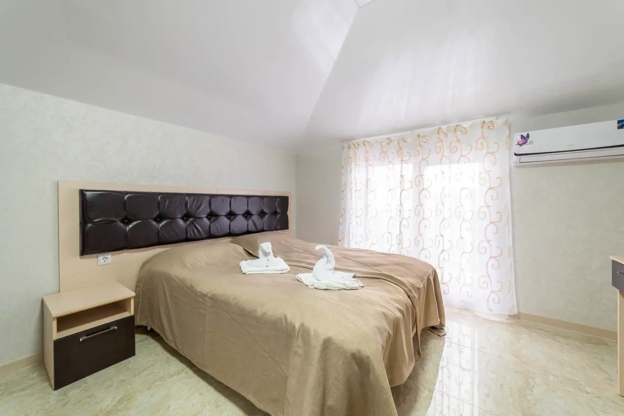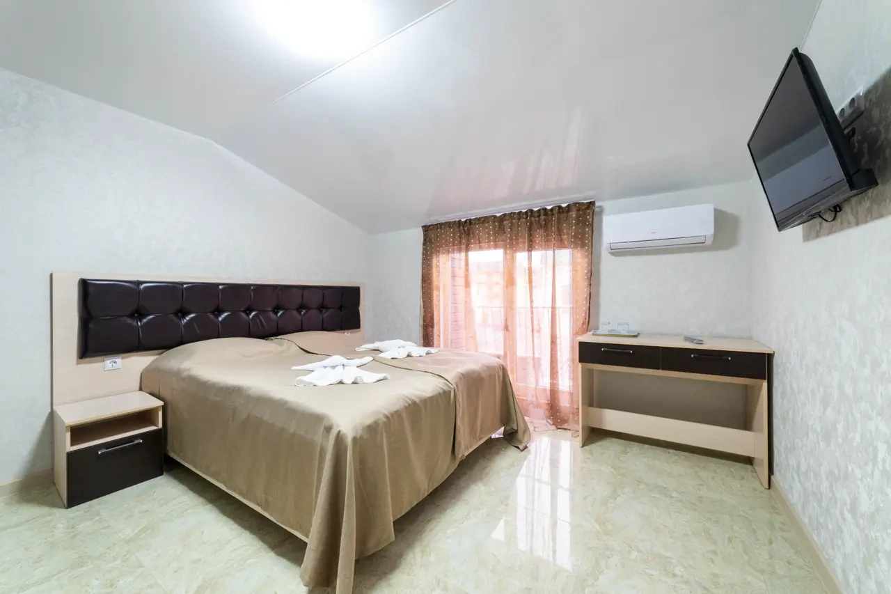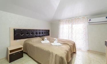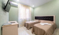 В номере у нас с ребенком было 2 кровати и еще стояла как 3 спальное место - раскладушка. В номере чисто, уютно . Есть чайник, холодильник, шкаф, кондиционер, кружки. Мы были на 2 этаже, очень хорошее расположение. В самом отеле тихо, жильцов встречала других редко