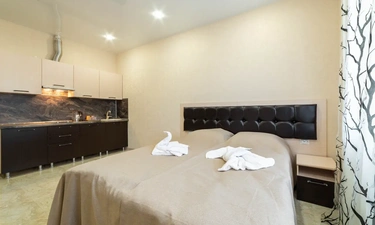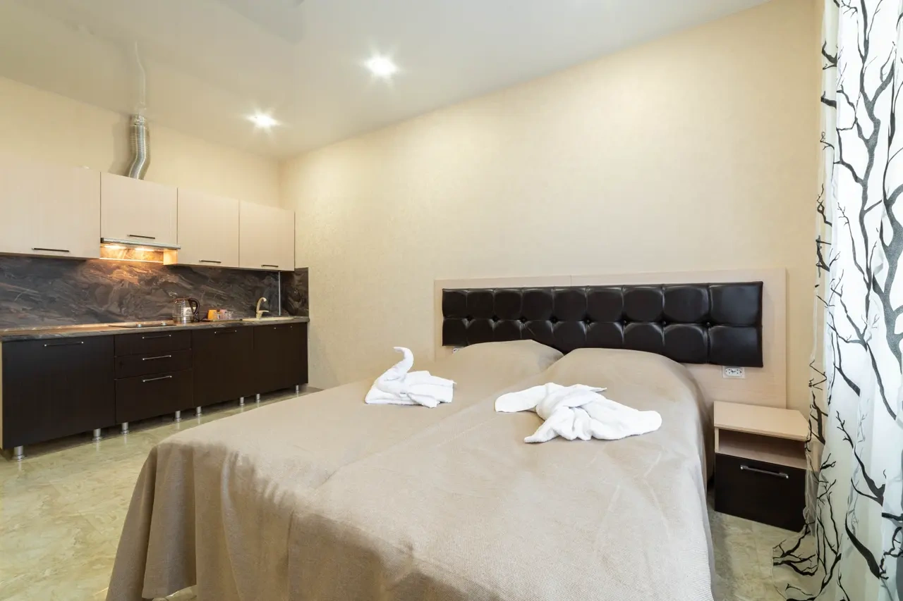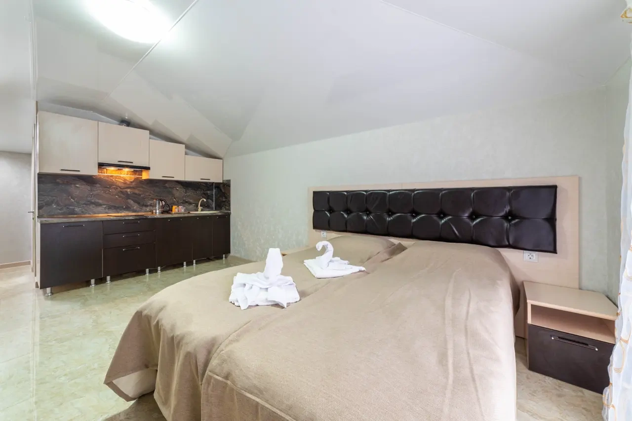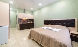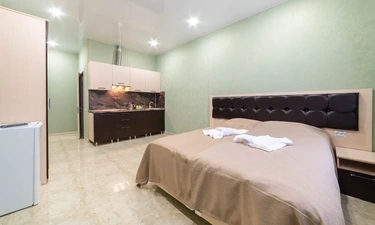 близко к морю, просторный номер, чисто, уютно, сантехника и мебель в отличном состоянии, хорошая, просторная кухня.