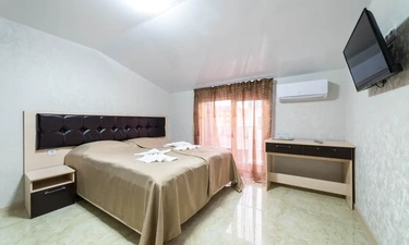 Отдыхали с семьёй в начале июня. Всё очень понравилось. Номер соответствовал описанию и фото. Уборка была каждый день (кто пишет что в номере не убирают). До моря 7 минут пешком + проходишь прилавки с едой и сувенирами. Близко расположены магазины и столовые. Двор чистый, кухня тоже. Во дворе есть где посидеть и приготовить, посушить вещи. Единственный минус нет балконов в номерах, но это не проблема.