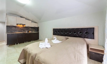 Отличная локация, в номере чисто, кондей работает хорошо, до моря недалеко, рядом полно кафешек. Брали номер с кухней, вся посуда есть, чайник есть. В принципе можно добавить микроволновку и тогда будет идеально.