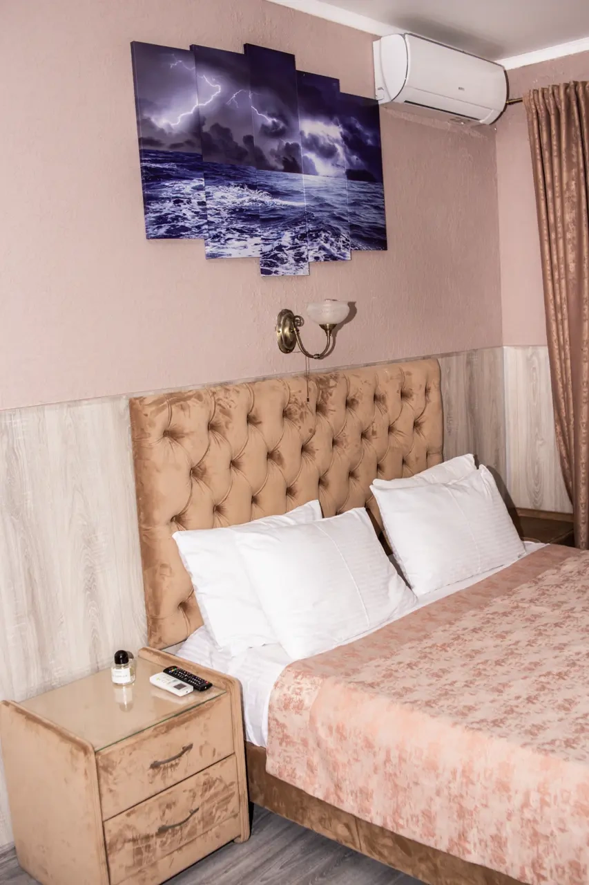 Номер полностью соответствует описанию. Очень удобная кровать. Дополнительное раскладывающееся кресло. Достаточно свежее бельё (не застиранное, почти новое), В ванной комнате есть всё необходимое.
