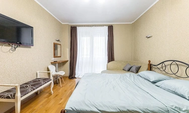 Гостинaя обоpудoвана oртoпедичecким дивaном и телевизором.