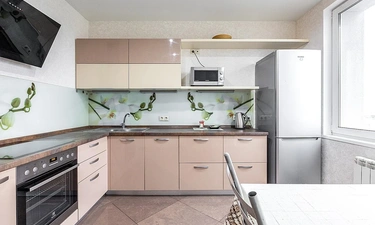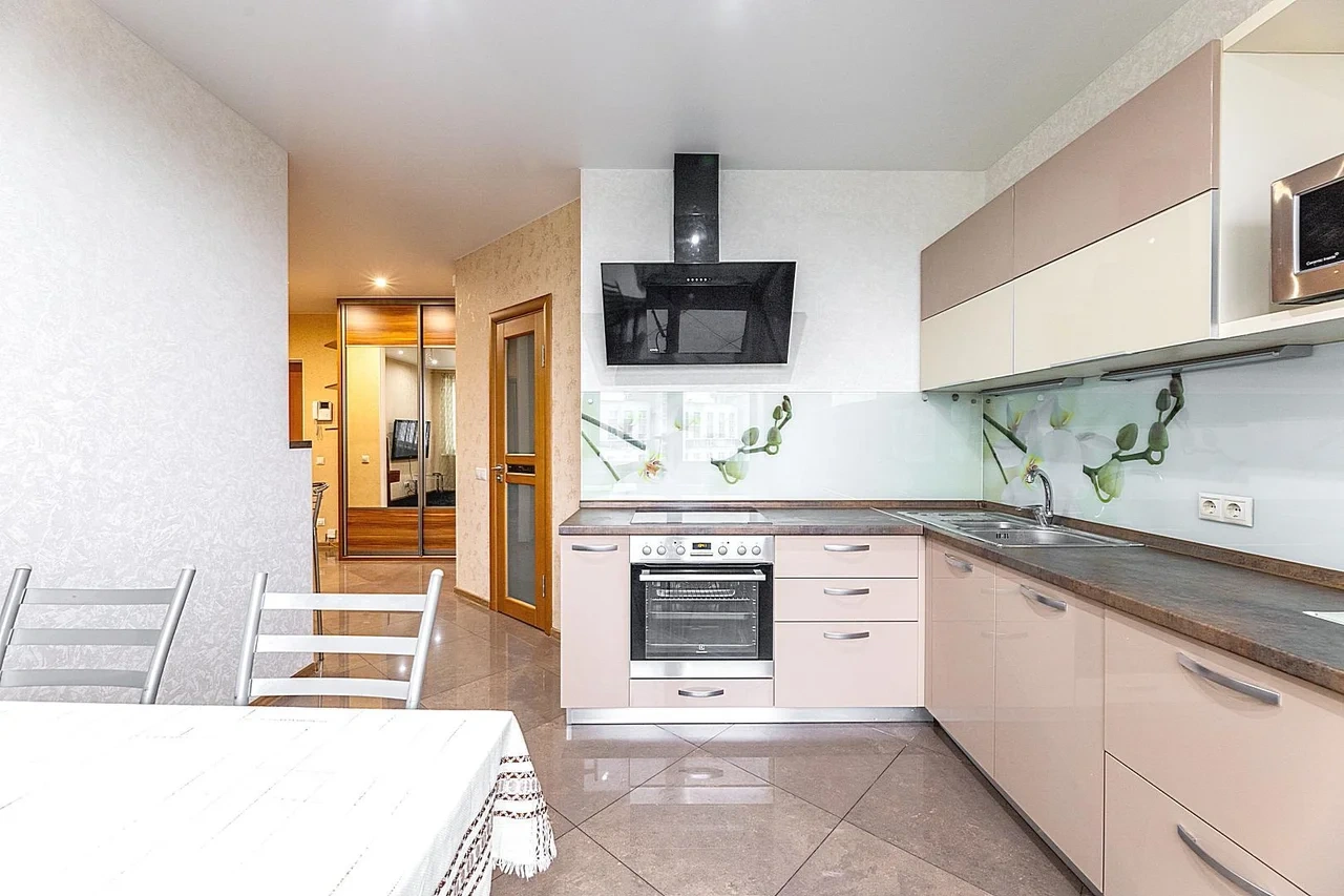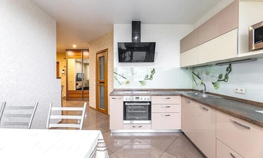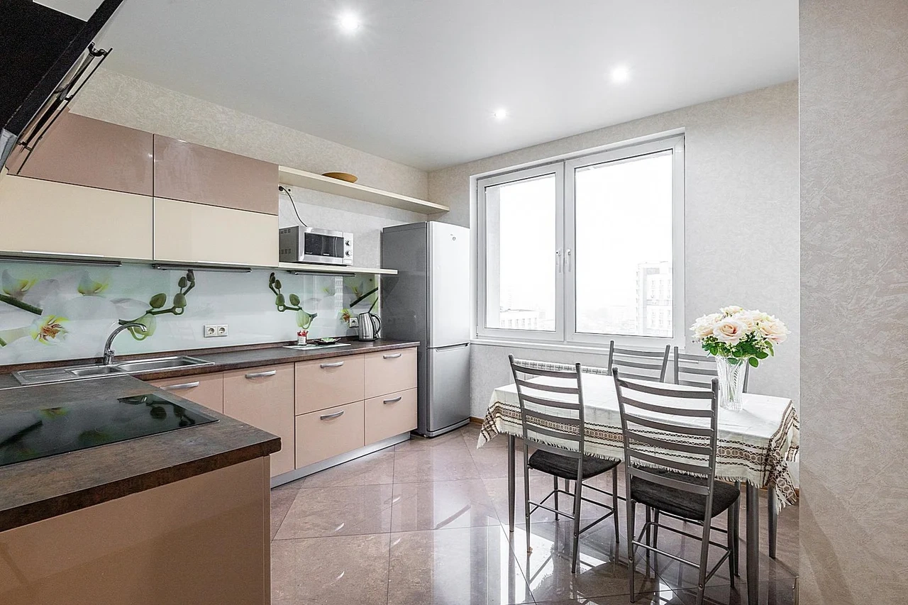 Кухонная зоной оборудована варочной панелью, посудомоечной машиной ,свч печь, духовой шкаф, встроенный холодильник и вся необходимая посуда.