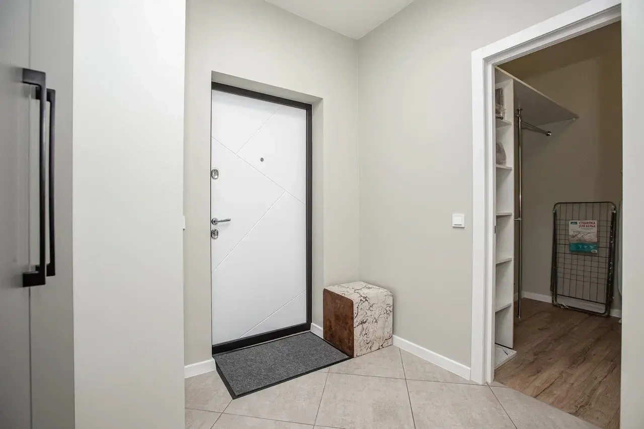 Бесконтактное/экспресс заселение. Быстро и удобно оказались в квартире. Рядом много парковочных мест. Рядом метро и торговый центр.