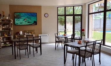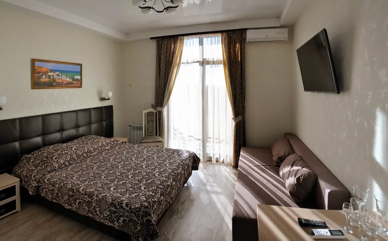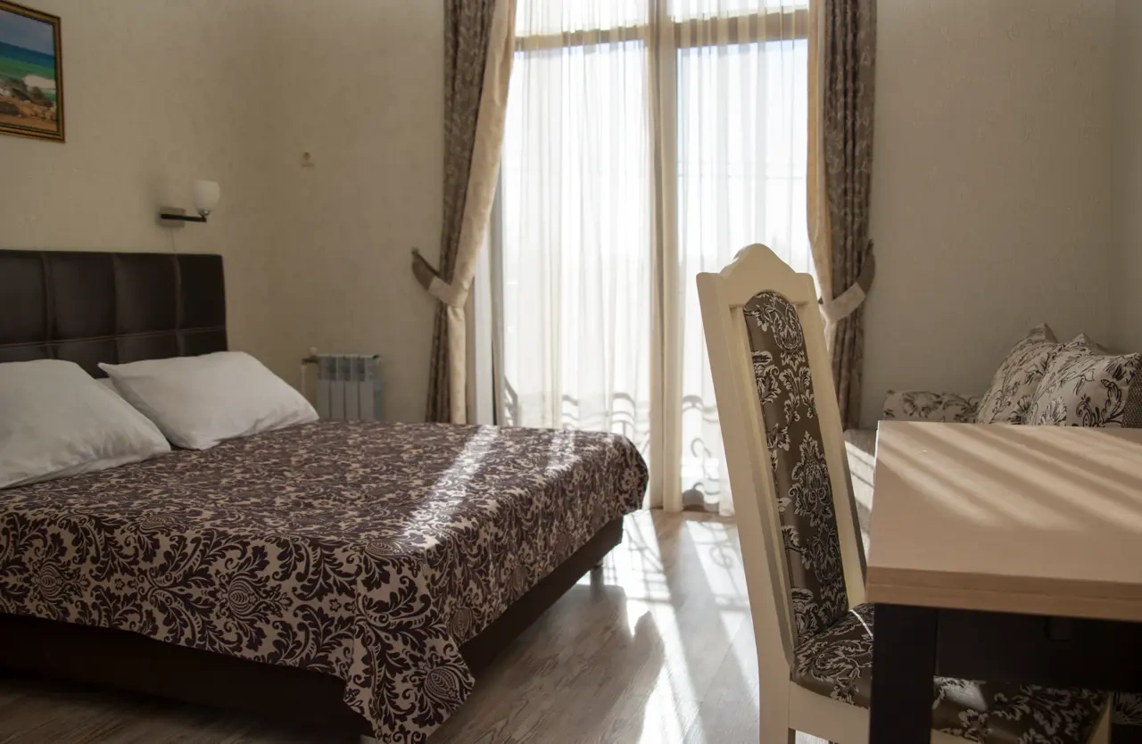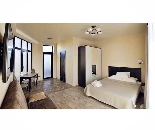 Это новый комфортабельный мини отель. Находится в самом живописном месте города Севастополя — на мысе Фиолент. Интерьер отеля погружает вас в атмосферу комфорта. Отель расположен в уникальном микро климате. Рядом — парк из хвойных деревьев и море. Морской воздух наполнен фитонцидами реликтовой крымской сосны и можжевельника, что благоприятно сказывается на здоровье человека. Русская баня, а рядом небольшой бассейн, делают ваш отдых по настоящему качественным. Пляж каменистый, но это гарантия чистейшей воды в любое время года, даже в августе. До самого центра города 10 минут на машине, либо на любом автобусе (астоновка 150 метров в любую сторону). До песочного пляжа 7 минут. Парковка рядом с отелем бесплатная. Гастрономические гурманы насладятся блюдами нашей кухни и вкусом молодых крымских вин. До встречи в Крыму!