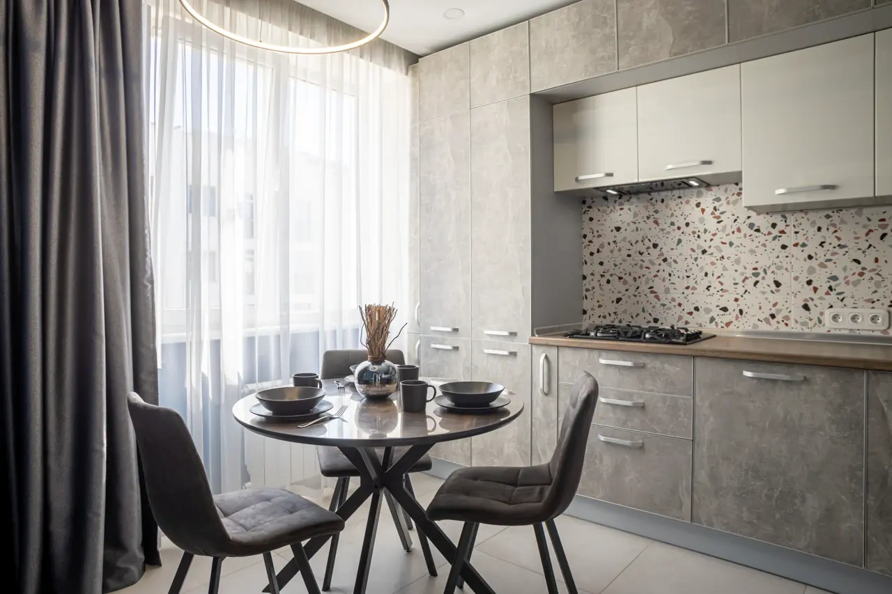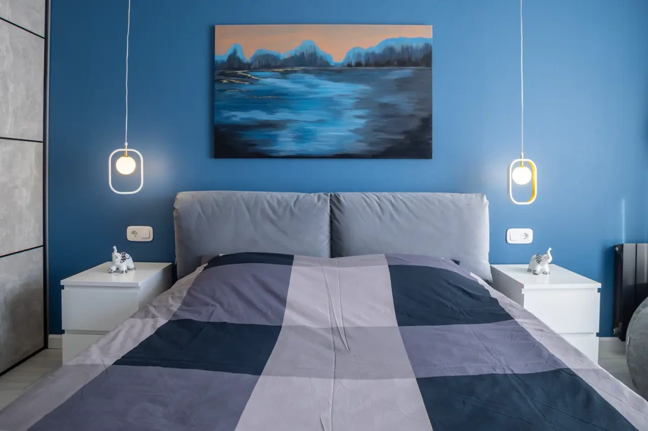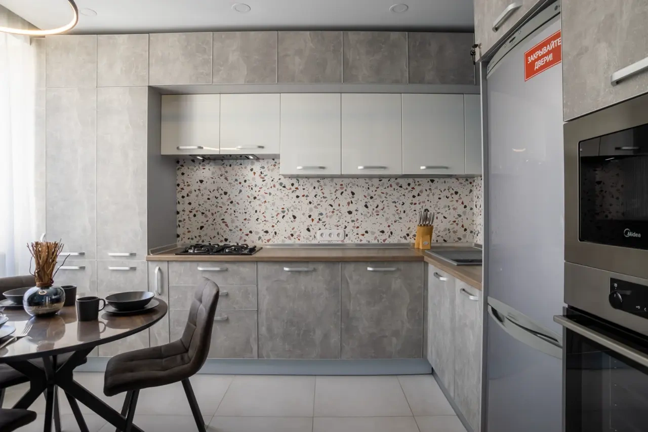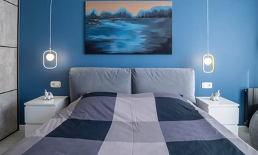 В комнате двуспальная кровать, ЖК-ТВ (smart-tv), WI-FI интернет, кондиционер, кухня 12 м. кв. (встроенная мебель), электрочайник, газ. плита, СВЧ-печь, посудомойка, духовка.