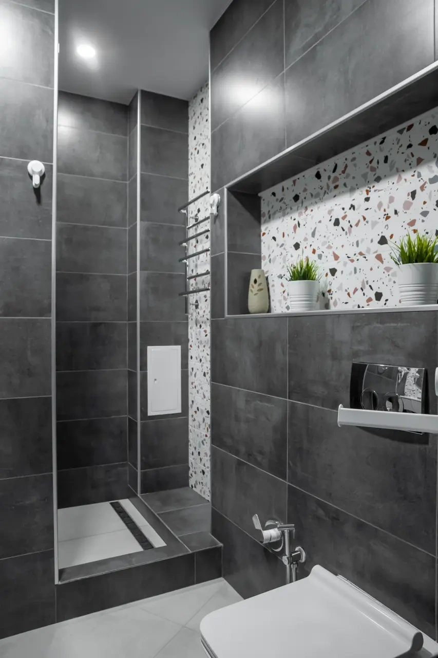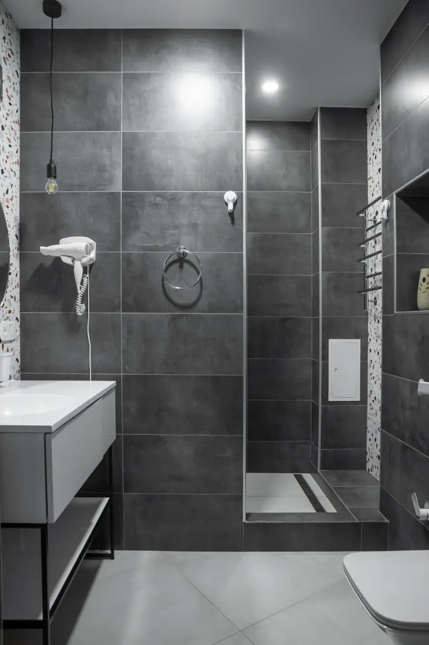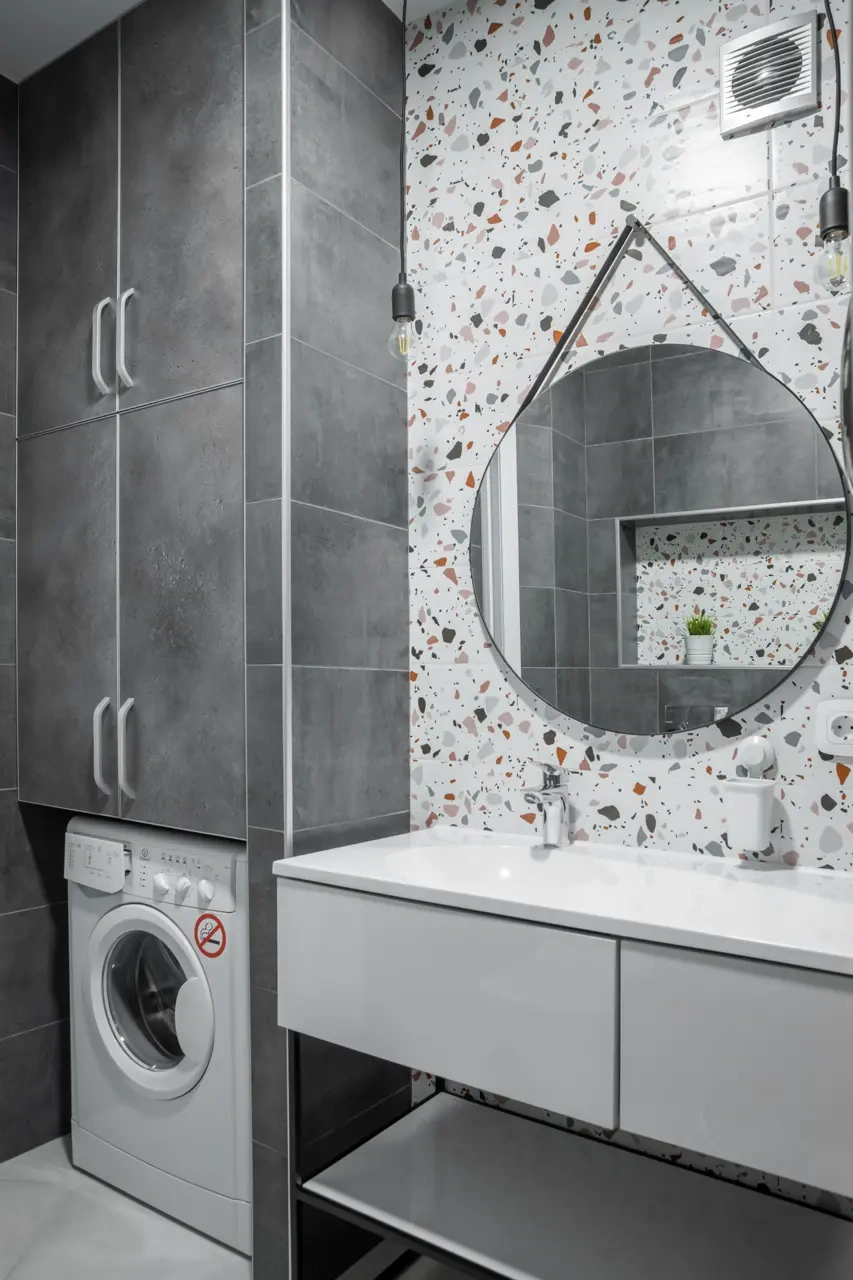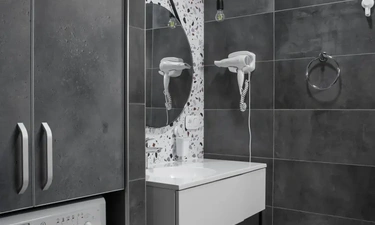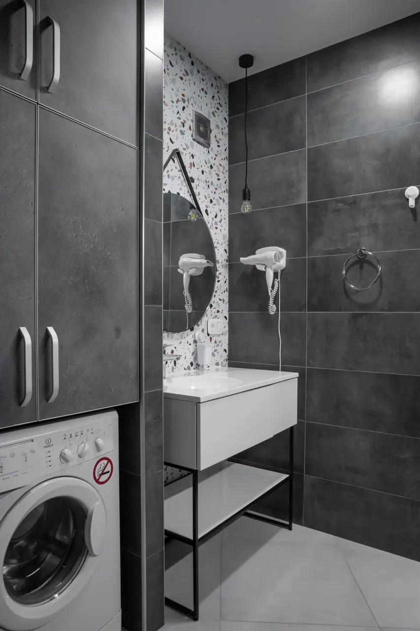 Есть робот-пылесос для сухой уборки. В ванной душ, гигиенический душ, туалет, стиральная машина-автомат, тёплый пол.