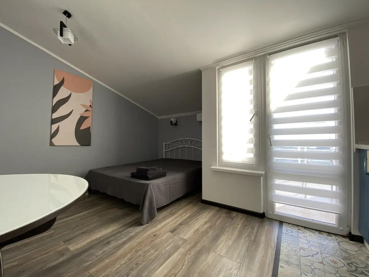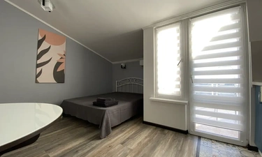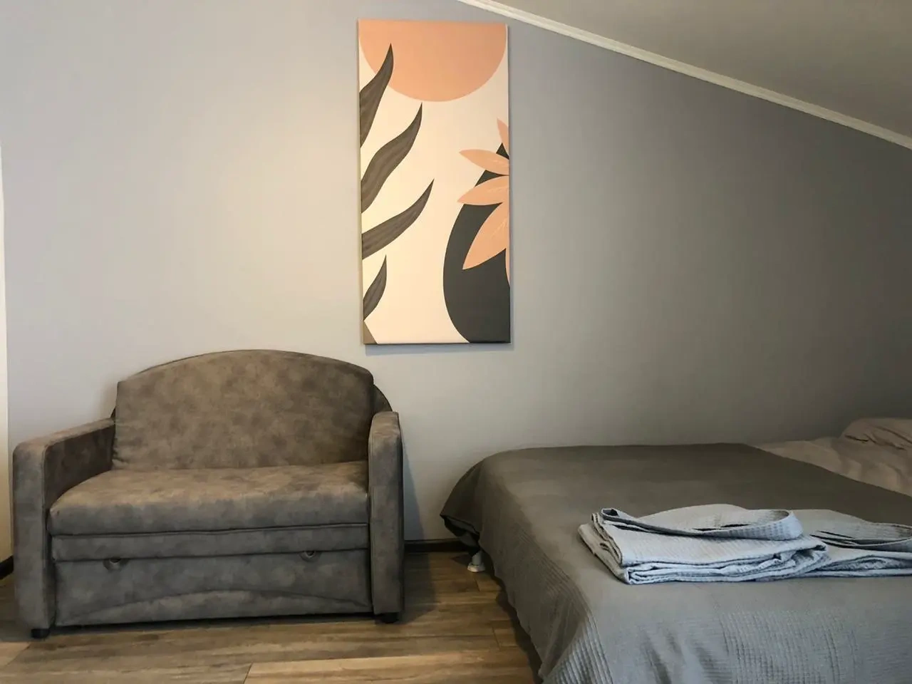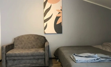 Апартаменты вмещают до трех человек. В спальной зоне расположена большая двухспальная кровать и раскладной диван.