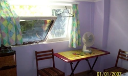 Круглосуточно холодная и горячая вода, есть собственный источник воды (колодец) и городская вода!(важная позиция для курортных городов, где воды не хватает). В комнатах вентиляторы многоскоростные не хуже кондиционеров, даже лучше-меньше болеют от них и необходимая мебель. Дом закрыт биокондиционером(оплетается листьями лианов, по японской технологии). В доме 2 туалета и 2 душа, в некоторых комнатах душ и туалет и 2 во дворе, так что очередей нет. Уборка в комнатах производится самостоятельно, либо за отдельную плату.
