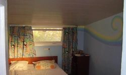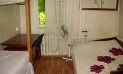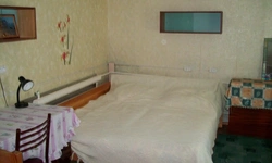 Акция: предлагается недорогая или бесплатная экскурсия по красивейшим местам Крыма! Очень уютный номер, из окна виден сад и горы, окно частично украшает живой виноград. Три кровати односпальные и можно ещё при желании поставить 4 дополнительную. Шкаф платяной, стулья, стол, тумбочки.