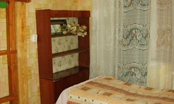 Акция: предлагается недорогая или бесплатная экскурсия по красивейшим местам Крыма! Очень уютный прохладный номер, из окна виден сад и горы, окно частично украшает живой виноград. Две кровати одна двух спальная вторая односпальная. Шкаф платяной, стулья, стол, тумбочки.