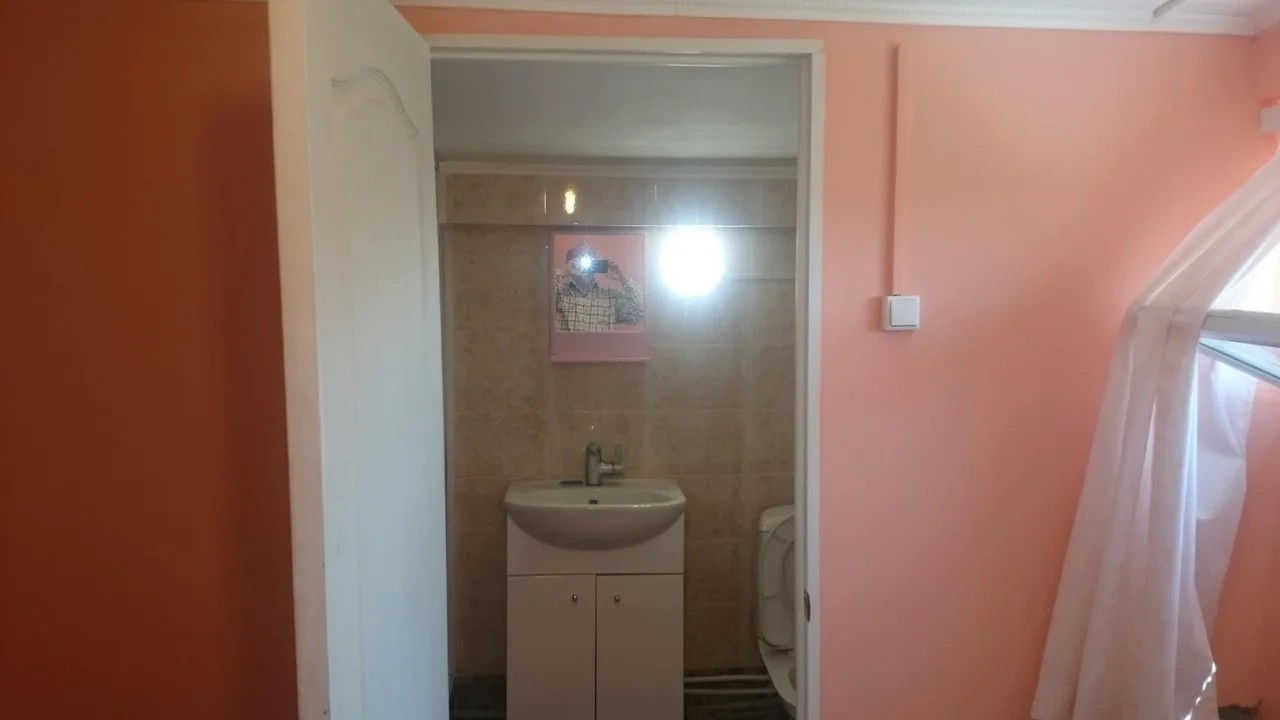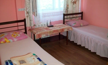 Четырёх местный с душем и туалетом, отличный ремонт. В номере большой стол, 4 кровати с ортопедическими матрацами, шкаф, вешалки, стулья, отличная вентиляция, почти весь дом оплетён зеленью-по японской технологии биокондиционер отлично справляется с температурой.