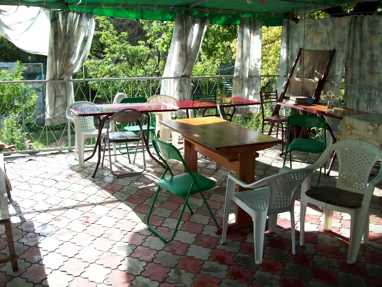 гостевой дом в тени больших деревьев и в обилии цветов на большом участке(7 соток), до остановки пляж «Учкуевка» 4-6 мин автобусом(фактически, отличная трасса, иногда до остановки ехал за 3 мин). На Учкуевке много мест, где можно найти по вкусу кафе, столовые. Учкуевка - песочный пляж и плавный спуск в море, считается лучшим пляжем в Севастополе. К Учкуевке примыкает галечный пляж "Мокроусова". Принимаем минимум на 5 суток. Акция, в зависимости от времени проживания предлагается недорогая или бесплатная экскурсия по красивейшим местам Крыма! Под тентом парковка на 4-5 авто на закрытой территории дома!