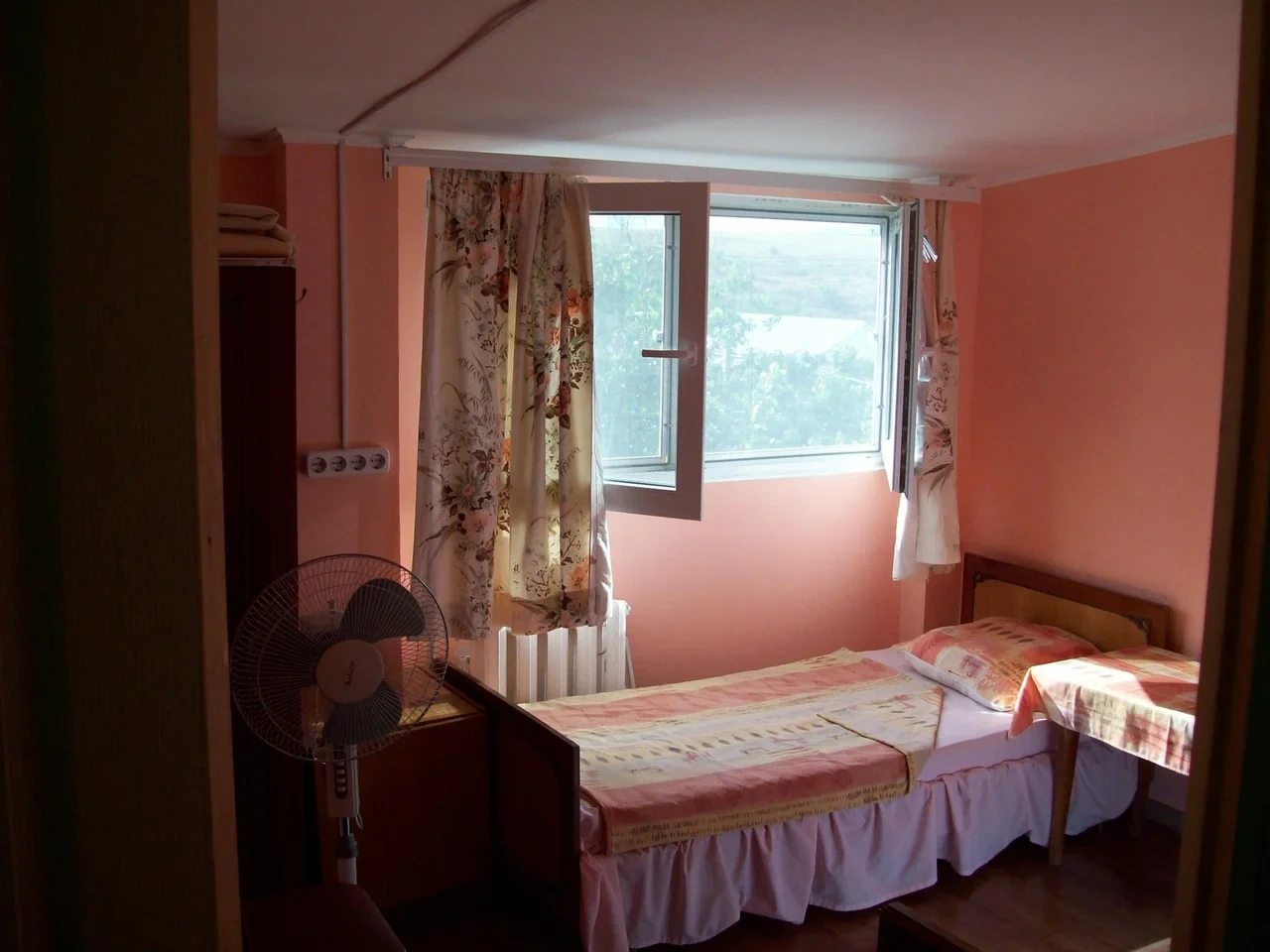 Акция: предлагается недорогая или бесплатная экскурсия по красивейшим местам Крыма! В комнате вентилятор многоскоростной не хуже кондиционера, даже лучше-меньше болеют от них и необходимая мебель: кровати, тумбочки, столы, шкаф платяной. Для семейных пар кровати сдвигаются.