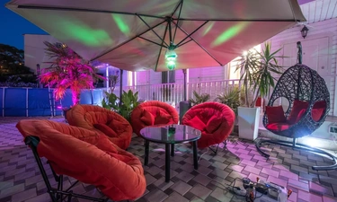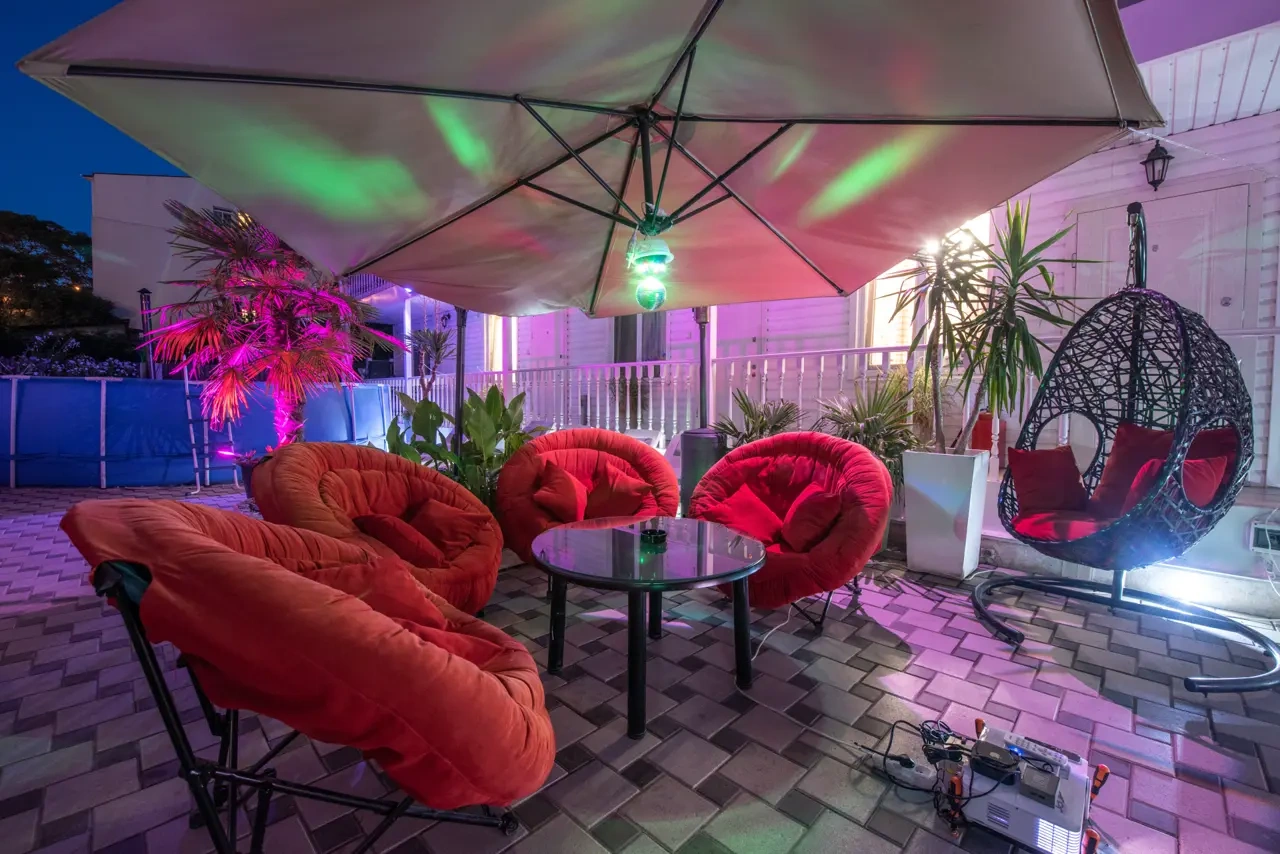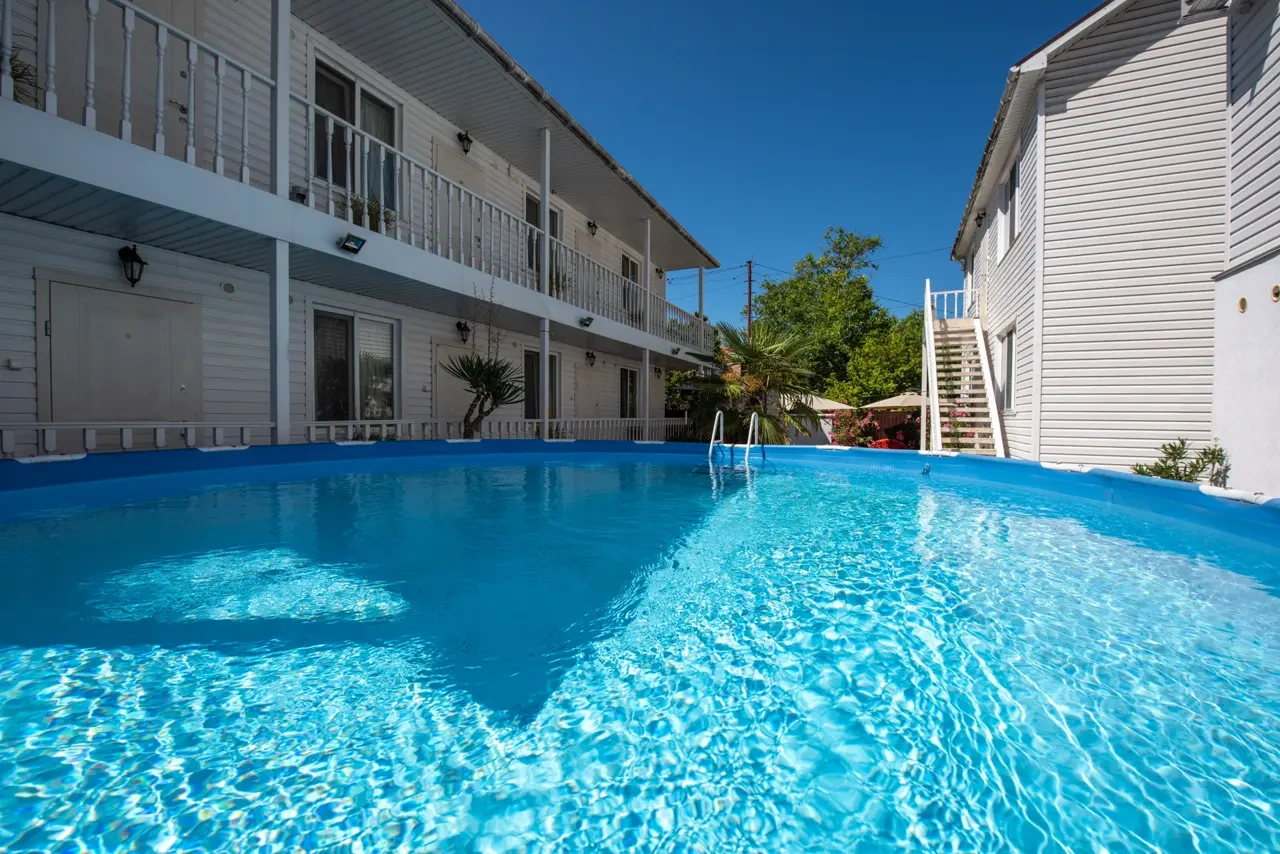 К вашим услугам уютные, комфортабельные, просторные номера со всеми удобствами: кондиционерами, гидромассажными ваннами или душевыми кабинками, телевизорами, сейфами. В каждом номере своя собственная кухня с холодильником, плитой, микроволновкой, полным набором посуды и даже личной кофе машиной. Отель принимает гостей круглый год: зимой здесь очень тепло, летом прохладно. Кровати с ортопедическими матрасами. На территории отеля имеется летний бассейн, лежаки, детские машинки, велосипеды и батут, летний кинотеатр-проектор с удобными креслами для отдыха как днём, так и вечером.