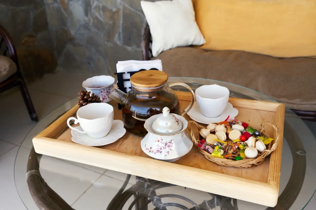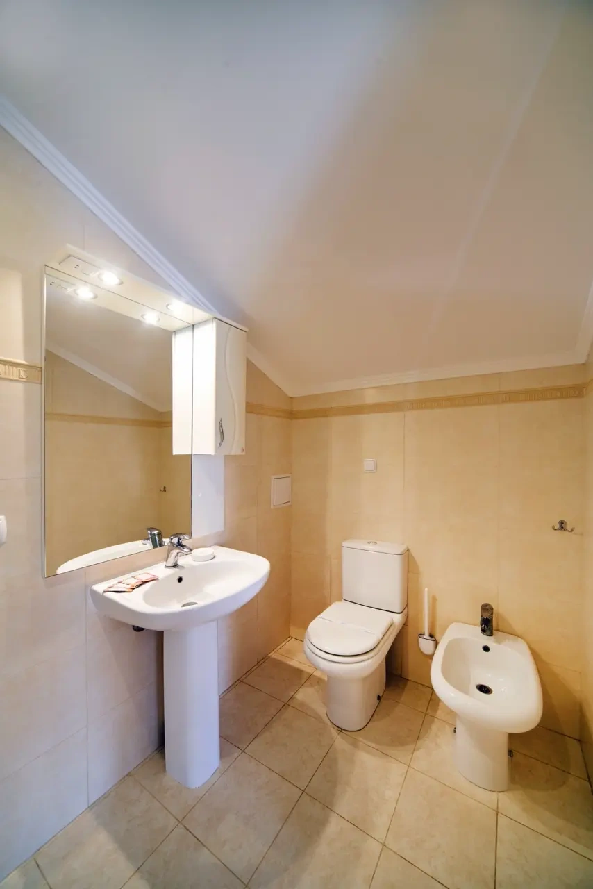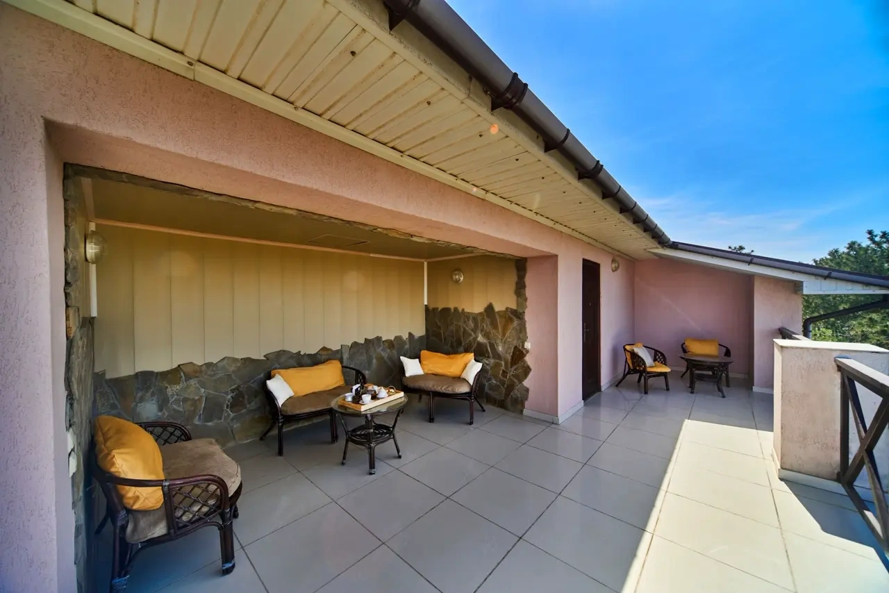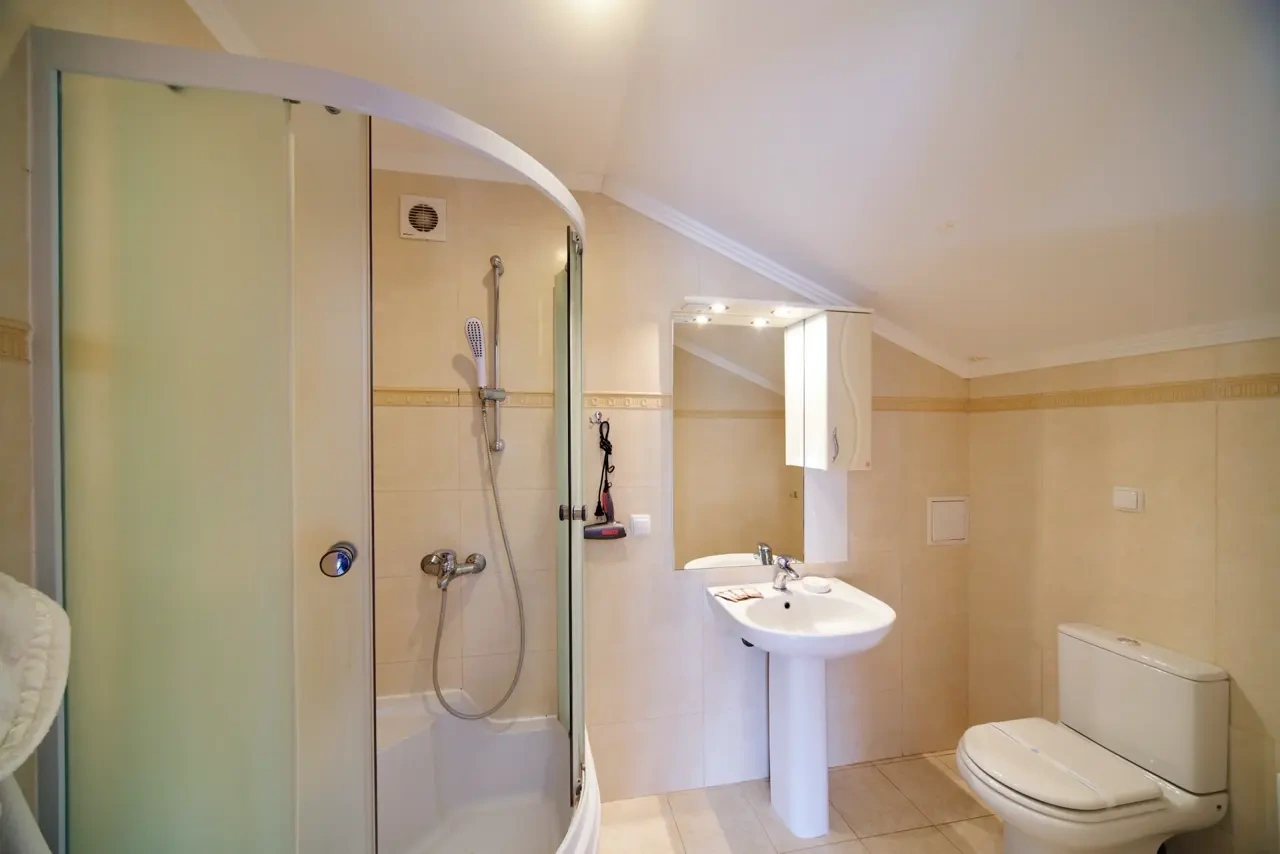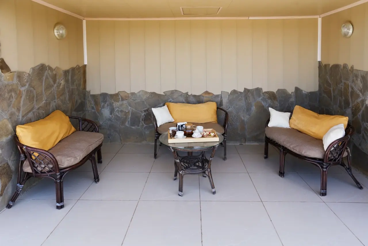 Номер комфорт расположен на 2 и 3 этажах, выходит на отдельную террасу для двух номеров. Включает в себя одну двуспальную и одну односпальную кровати, холодильник, телевизор, шкаф, сейф, кондиционер, туалет, душ, умывальник, фен , утюг, столовые приборы. В общей зоне помимо прочего расположена полностью оборудованная кухня со всеми удобствами для приготовления еды, зона барбекю, а также стиральная машина.