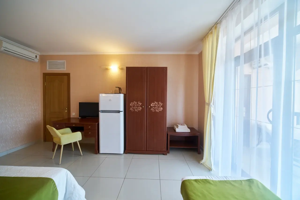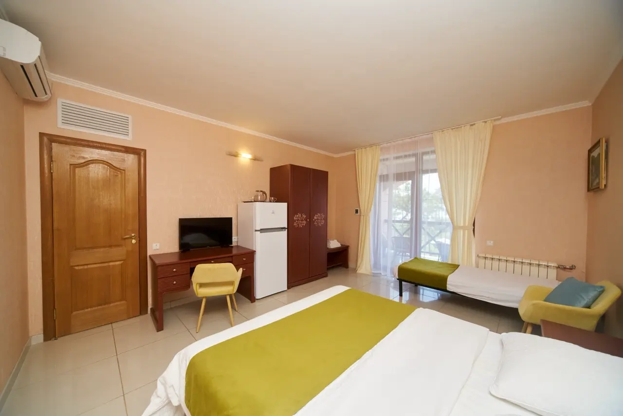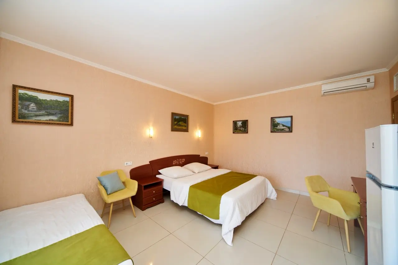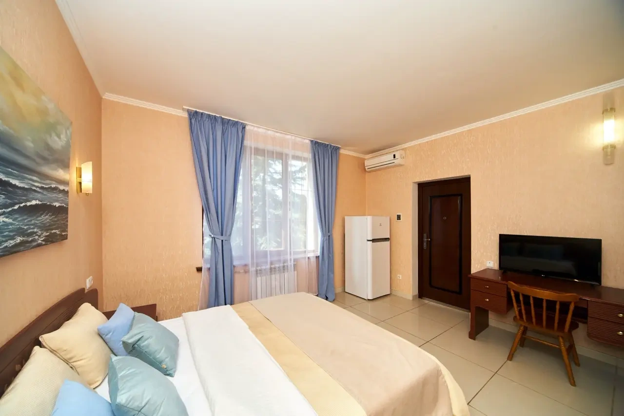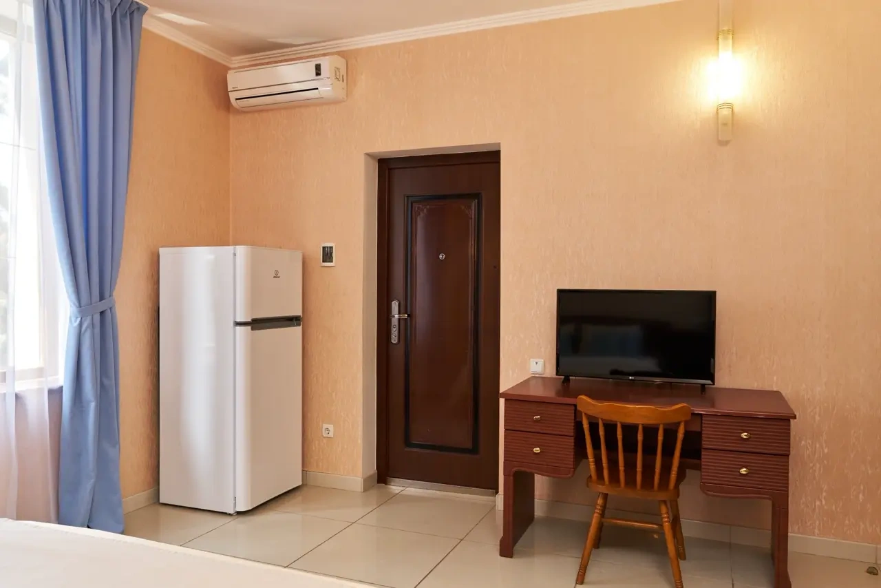 - Номера оснащены современной мебелью и техникой, имеется сейф, холодильник, набор посуды, отдельный с/узел и душевая кабина, начиная со 2-го этажа установлены кондиционеры, предусмотрена возможность размещения дополнительного места.