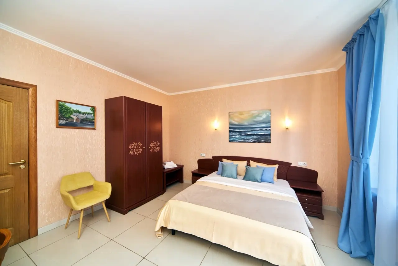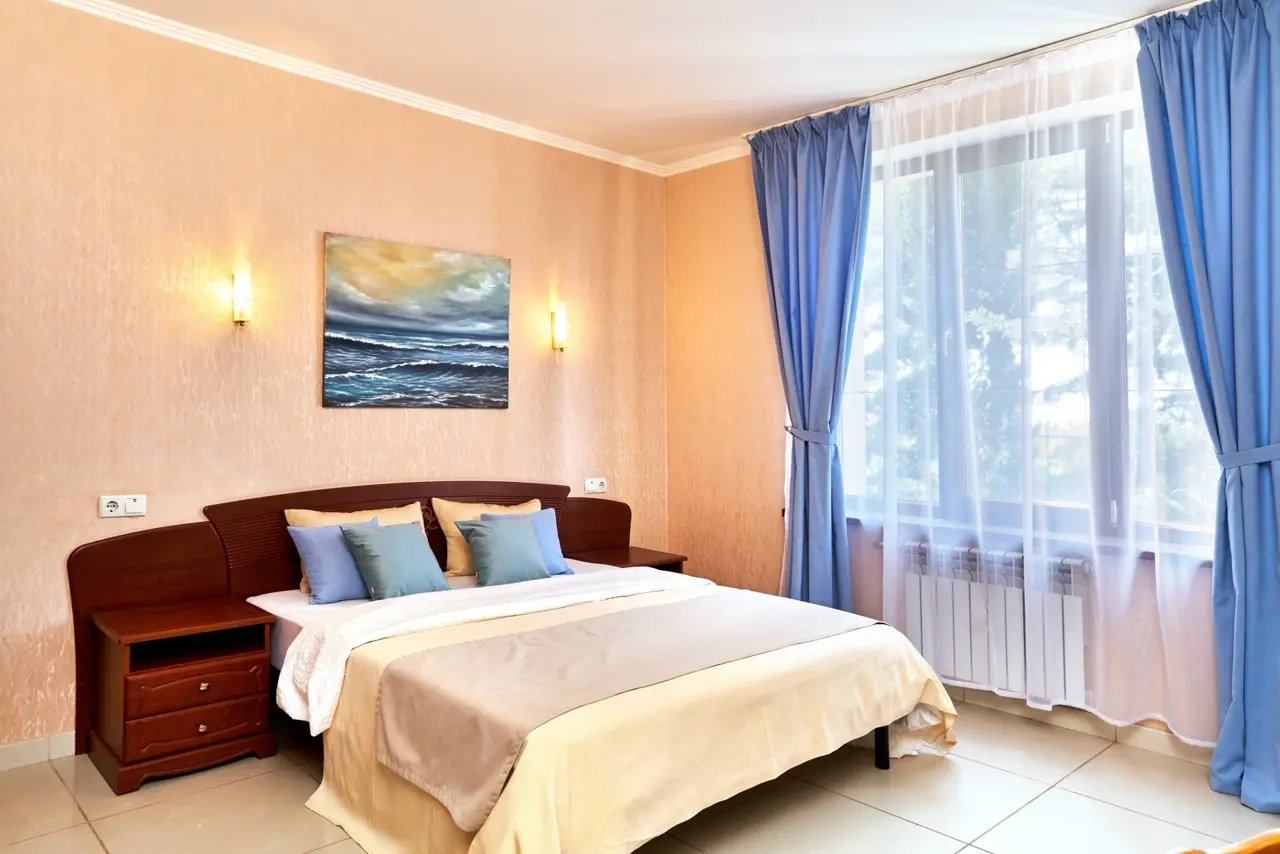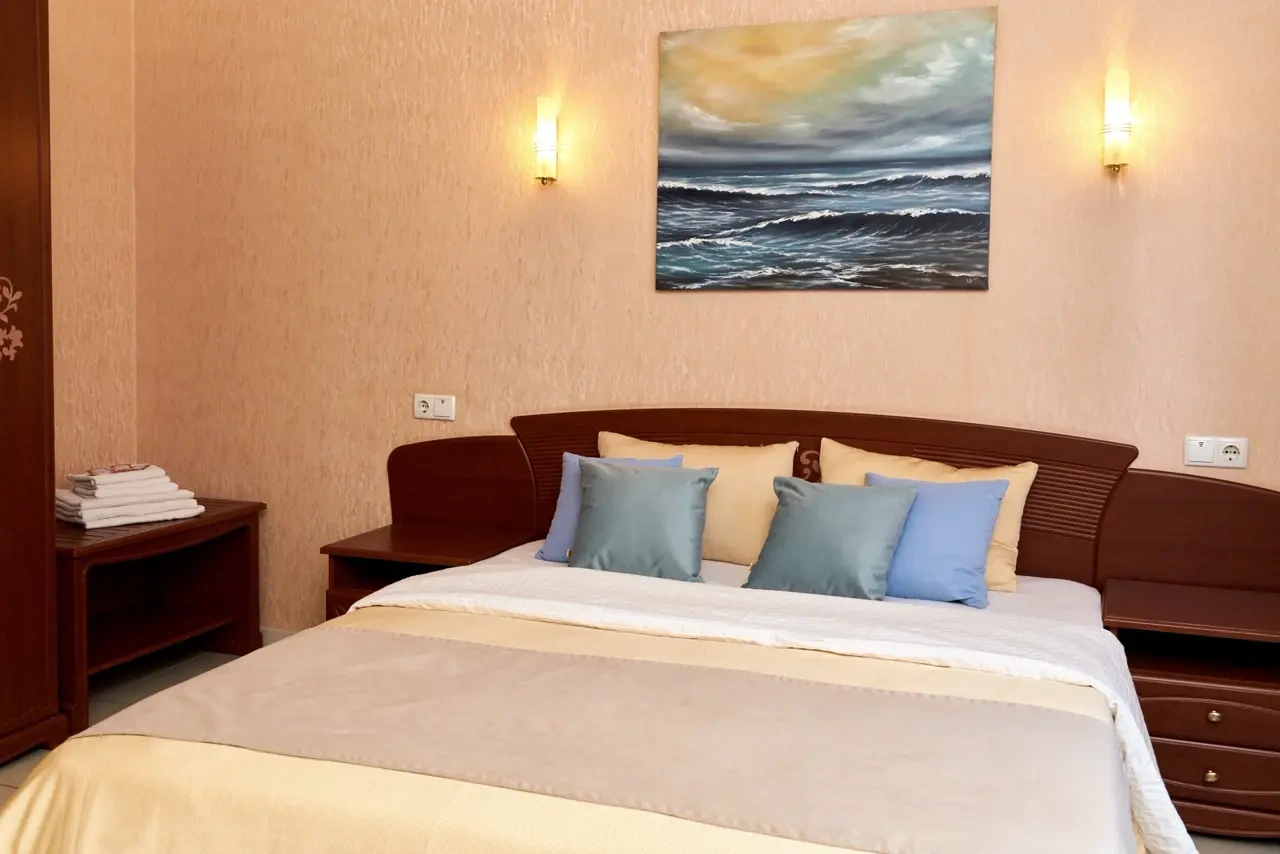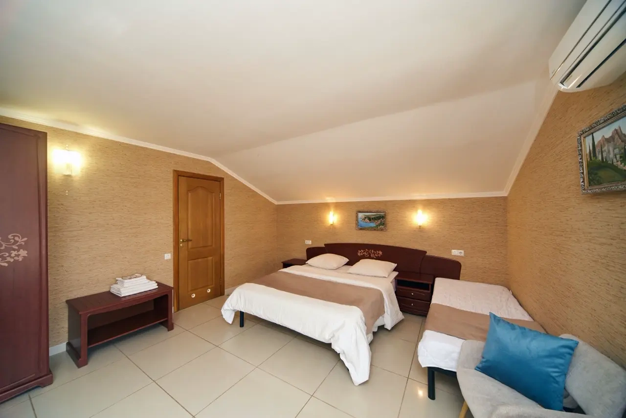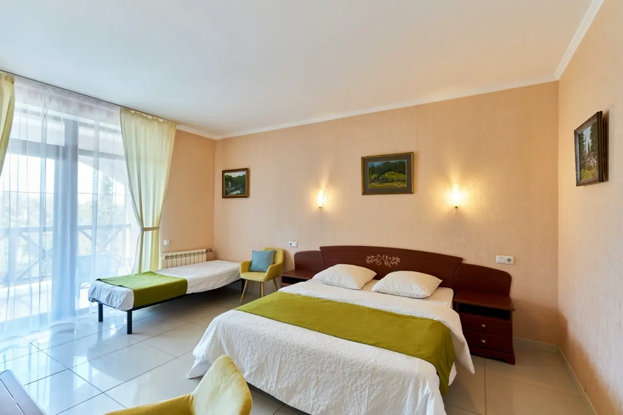 - Номера оснащены современной мебелью и техникой, имеется сейф, холодильник, набор посуды, отдельный с/узел и душевая кабина, начиная со 2-го этажа установлены кондиционеры, предусмотрена возможность размещения дополнительного места.