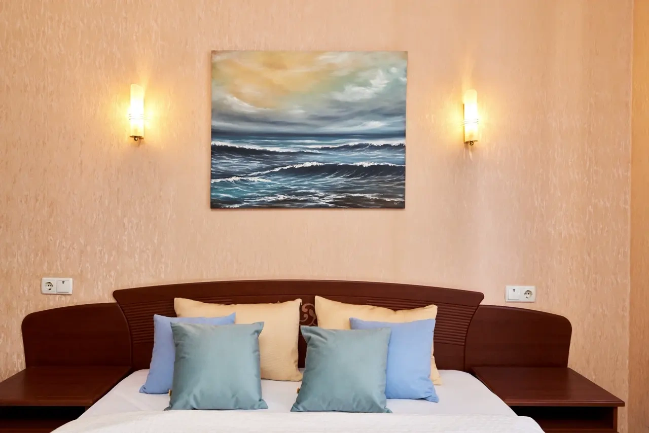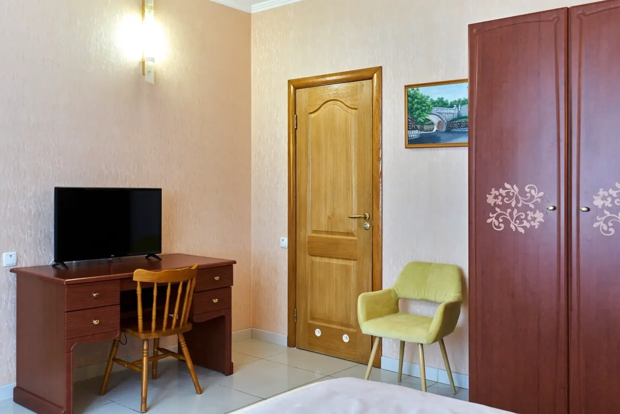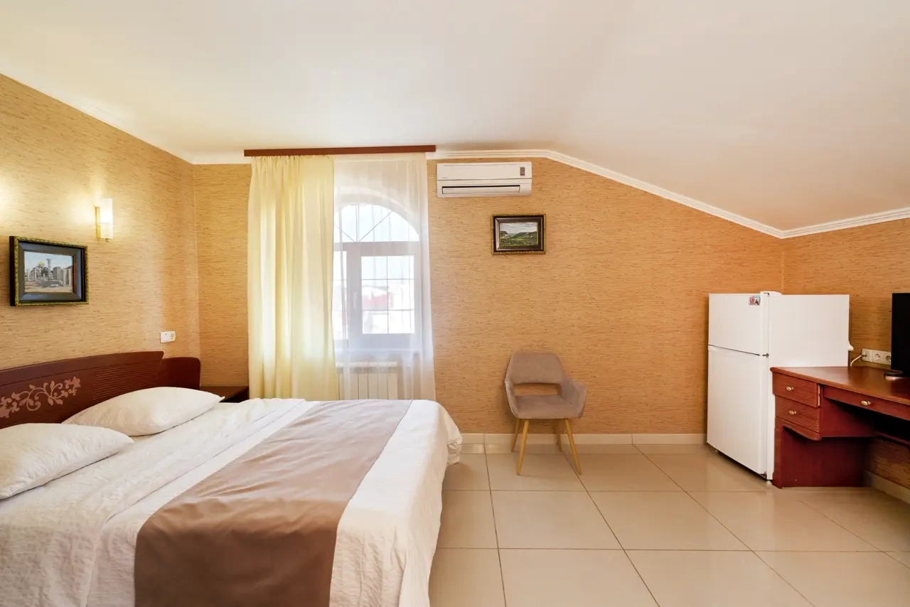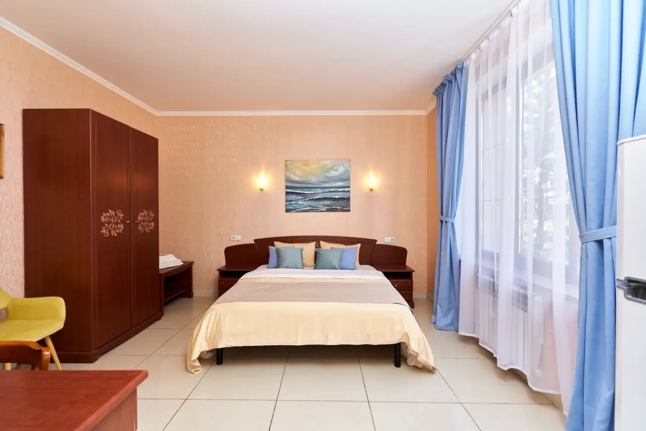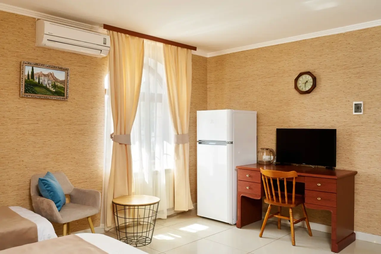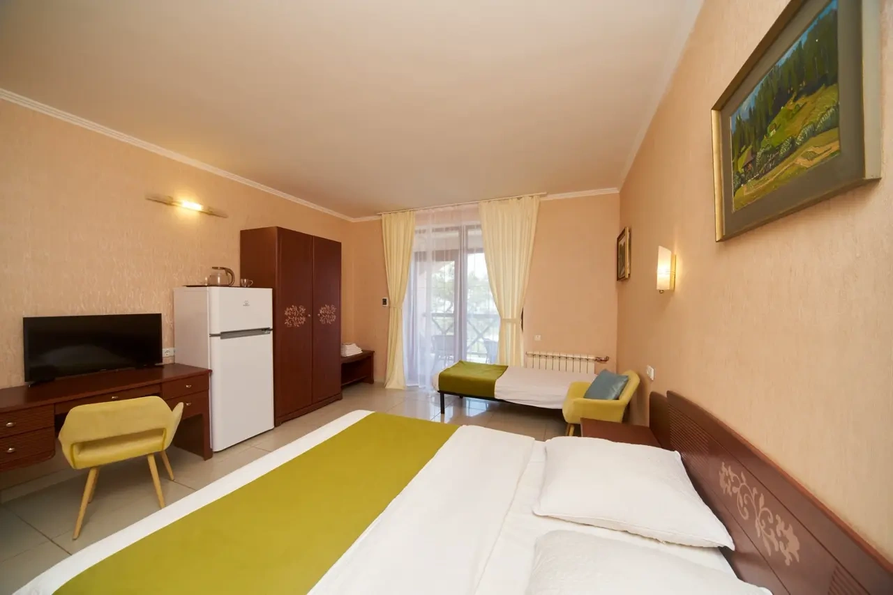 - Номера оснащены современной мебелью и техникой, имеется сейф, холодильник, набор посуды, отдельный с/узел и душевая кабина, начиная со 2-го этажа установлены кондиционеры, предусмотрена возможность размещения дополнительного места.