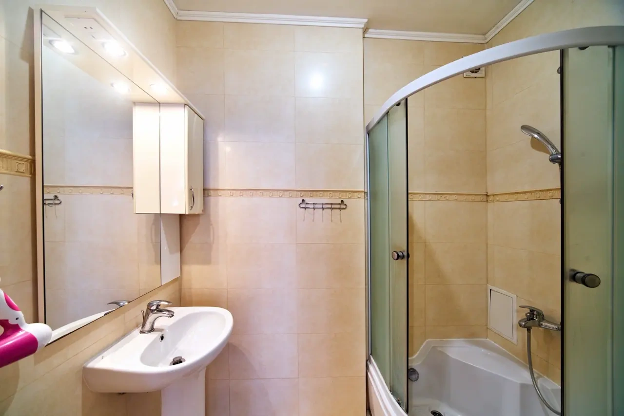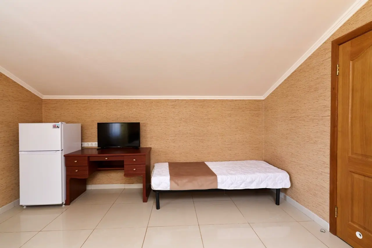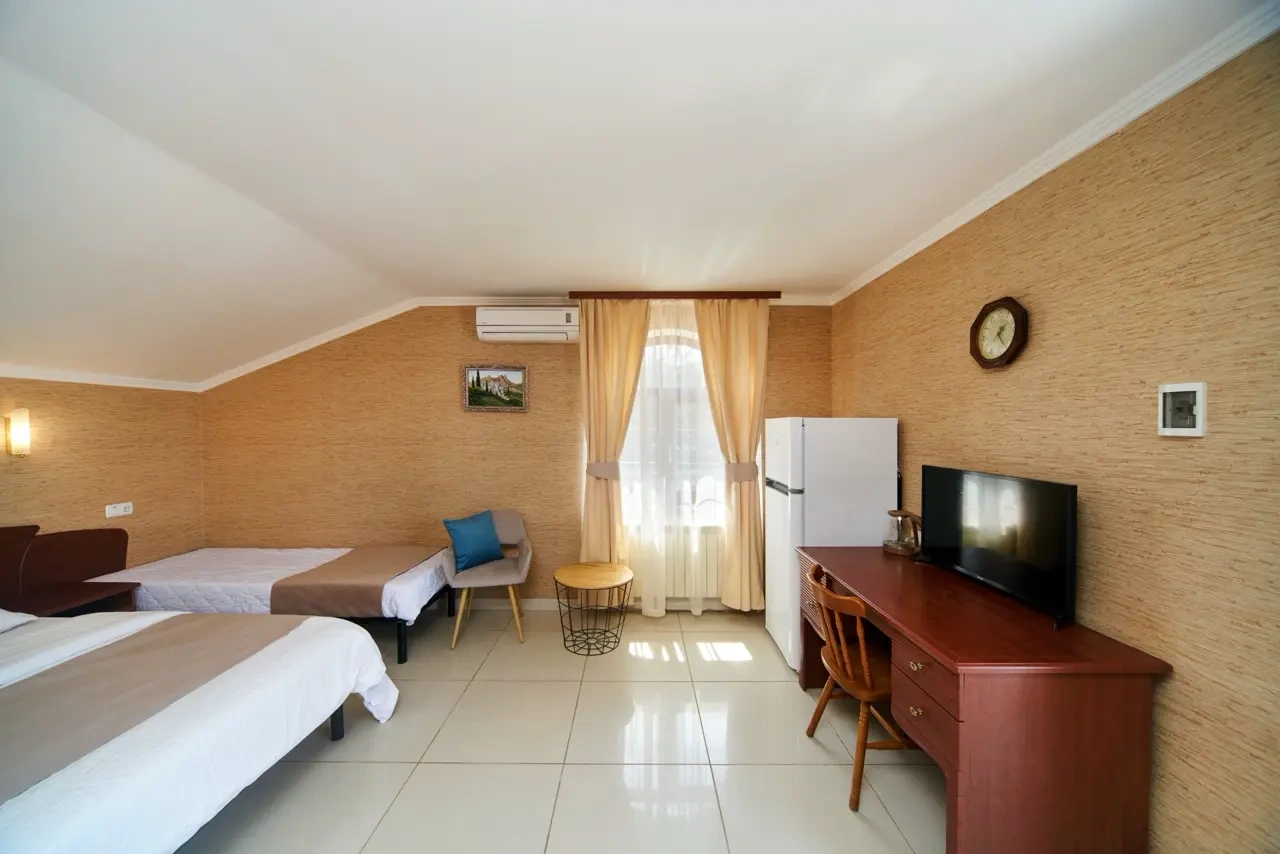Стандартный номер расположен на первом этаже. Включает в себя двуспальную (две односпальные) кровать, холодильник, телевизор, шкаф, кондиционер, туалет, душ, умывальник, фен , утюг, столовые приборы. В общей зоне помимо прочего расположена полностью оборудованная кухня со всеми удобствами для приготовления еды, зона барбекю, а также стиральная машина.