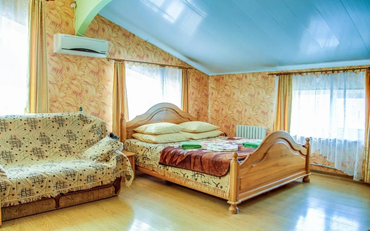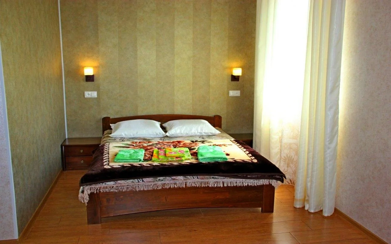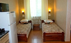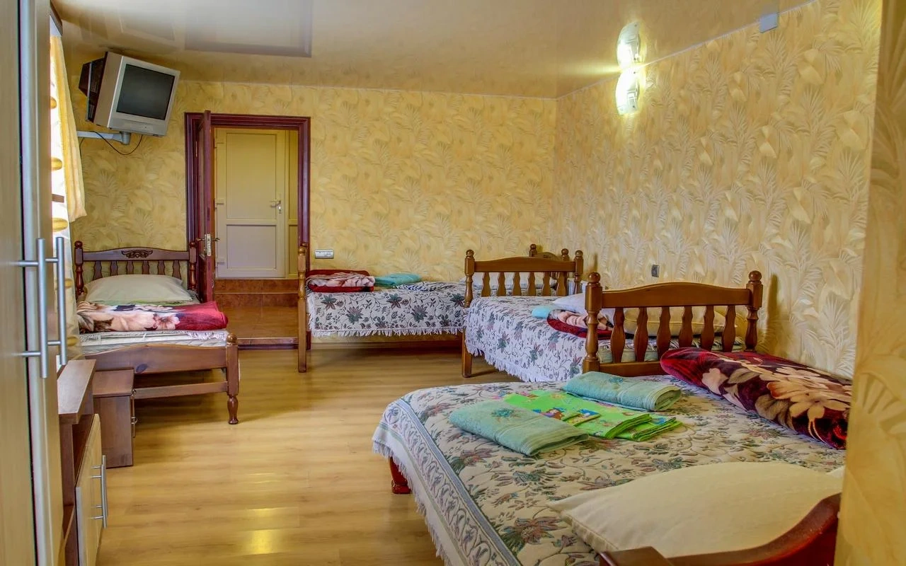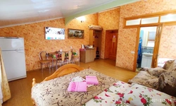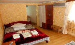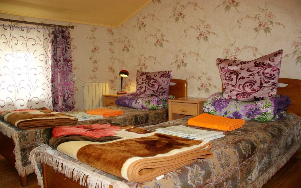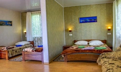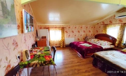 Мы предлагаем по-домашнему уютные, комфортабельные номера: "Эконом", "Эконом +", "Полулюкс", "Семейный" и отдельный "КОТТЕДЖ" 5сп мест. Большой дворик возле дома с двумя каминами-барбекю, детской песочницей и качелями приглашает посидеть на свежем воздухе.