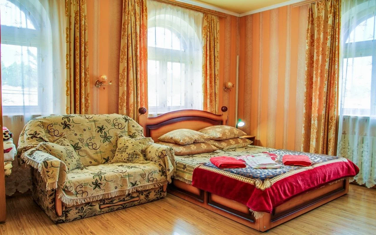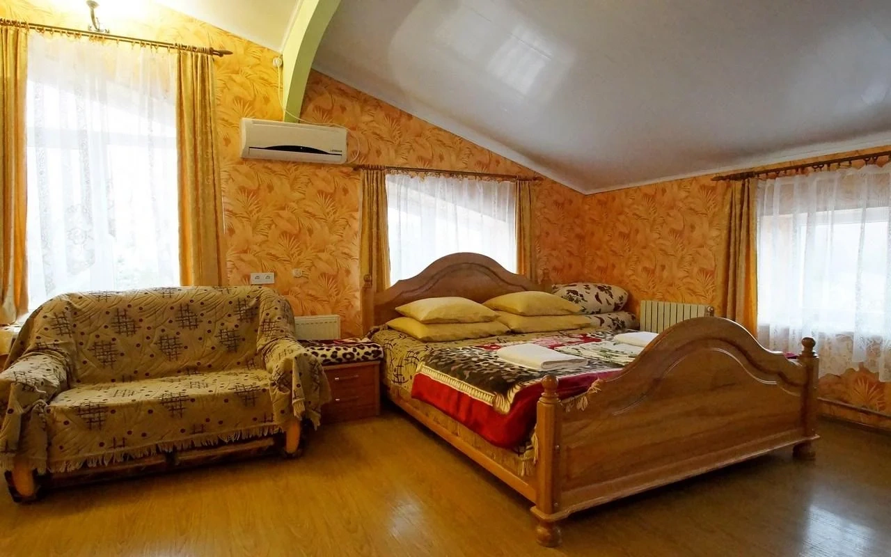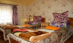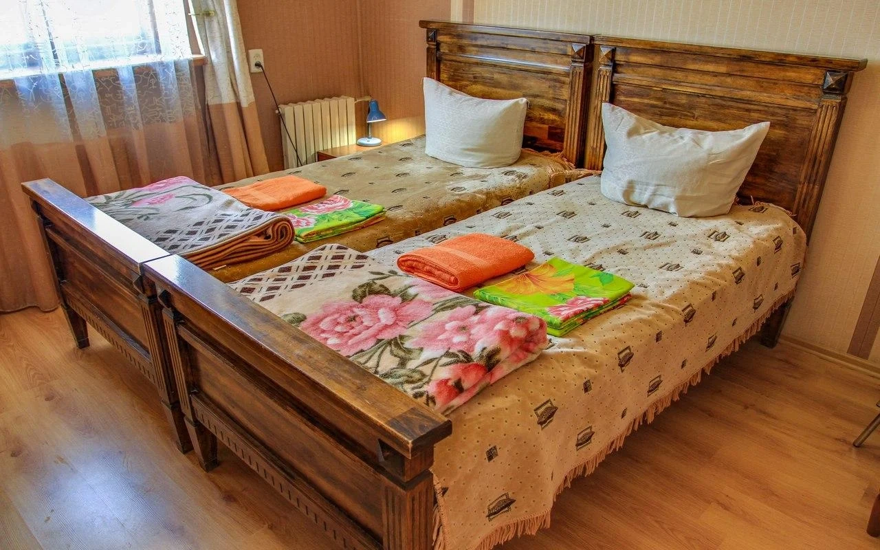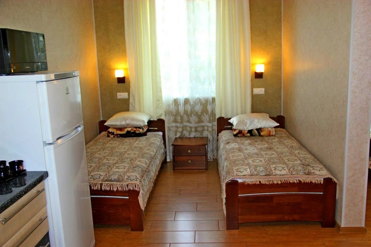 Мы предлагаем по-домашнему уютные, комфортабельные номера: "Эконом", "Эконом +", "Полулюкс", "Семейный" и отдельный "КОТТЕДЖ" 5сп мест. Большой дворик возле дома с двумя каминами-барбекю, детской песочницей и качелями приглашает посидеть на свежем воздухе.