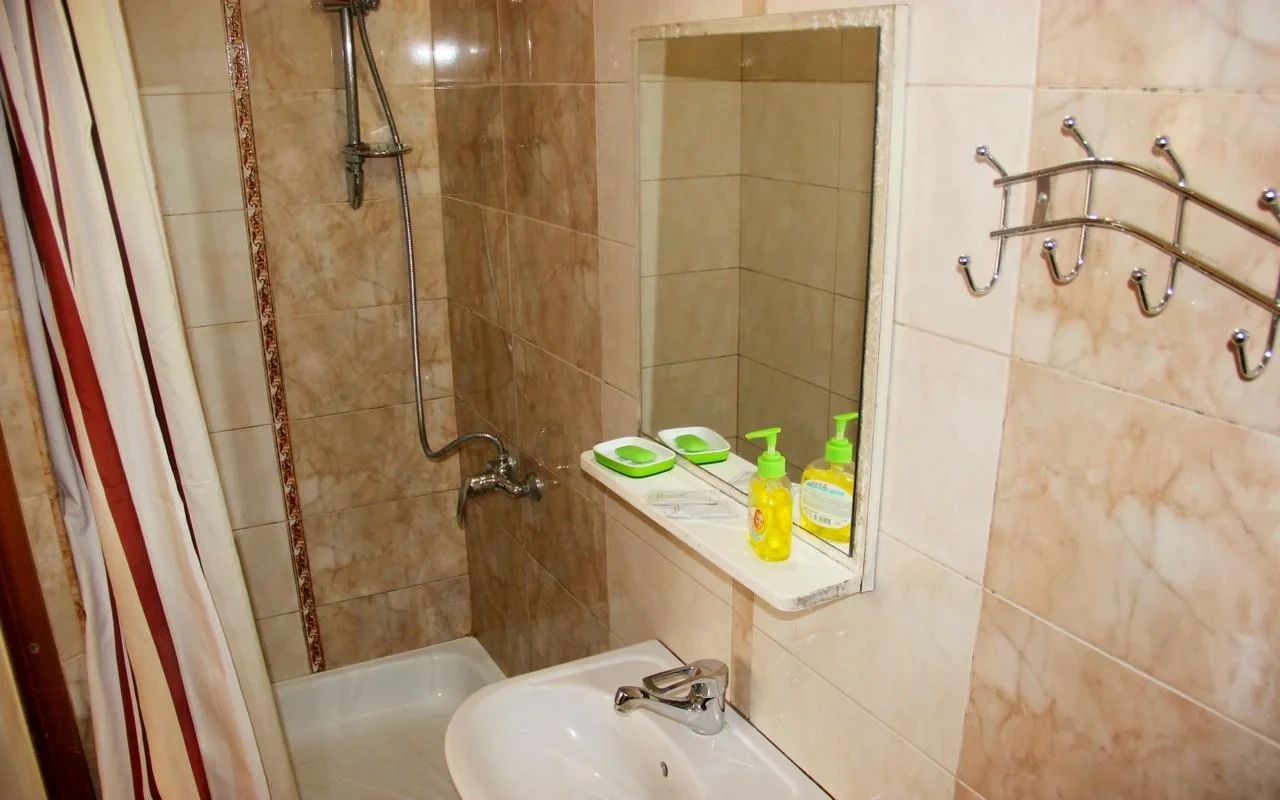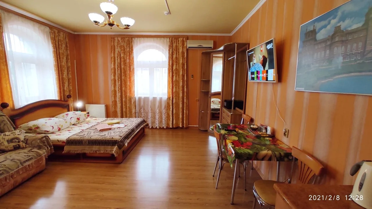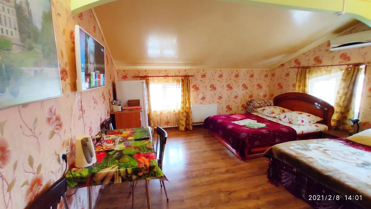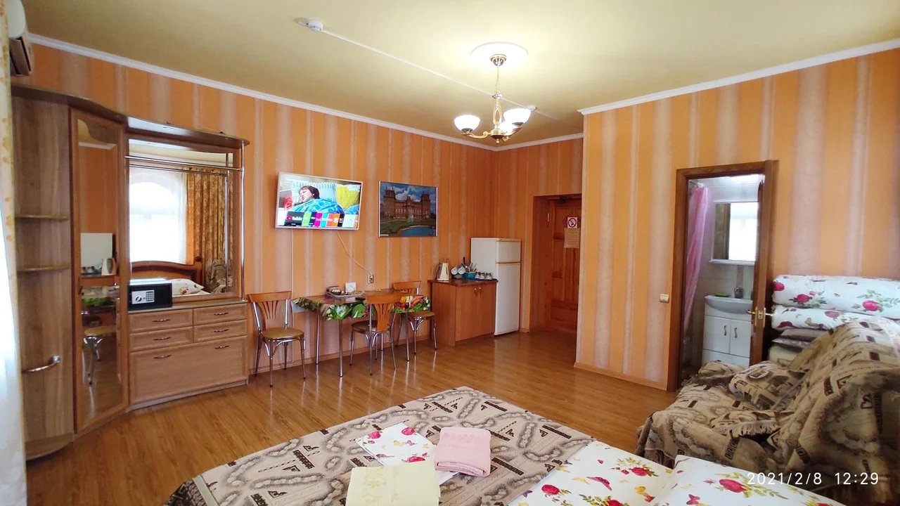 Очень радушный хозяин перекрывает все недочеты в этом гостевом доме. Это конечно не отель 5*, 4*, 3*, а гостевой дом, с простым ремонтом, но впечатления оставил очень хорошее. Во-первых, оказалось очень удобное расположение для наших целей, но, имейте ввиду, что подъезды к отелю сложные, остановки не близко, магазины и рестораны далеко, лучше приезжать на автомобиле. Во-вторых, в номерах хоть и просто, но достаточно чисто, есть все необходимое (фен, холодильник, есть общая кухня со стиральной машиной, гладильная доска на этаже, утюг, стол, посуда..). В третьих... не знаю даже, душевно что-ли в отличие от стандартных отелей.