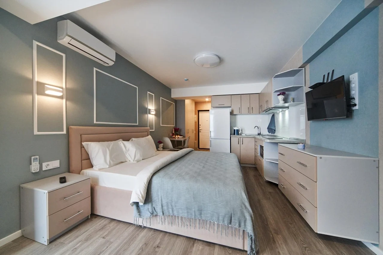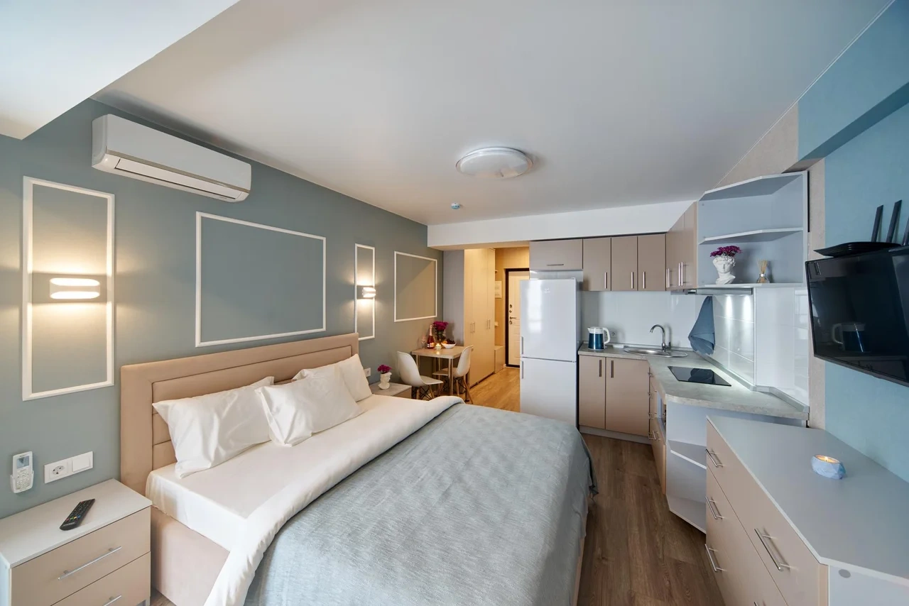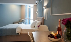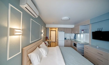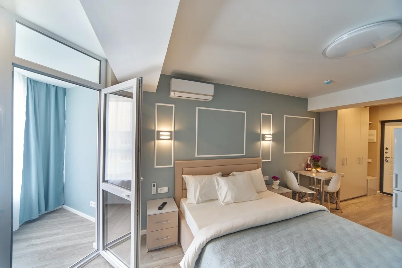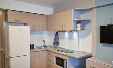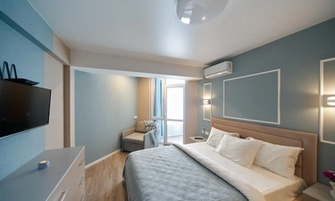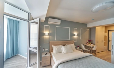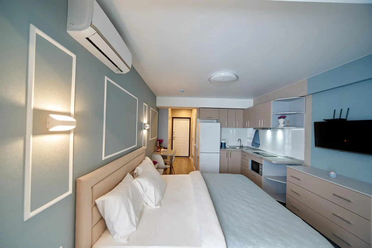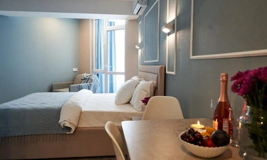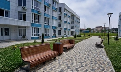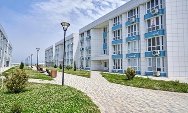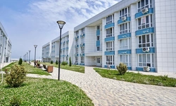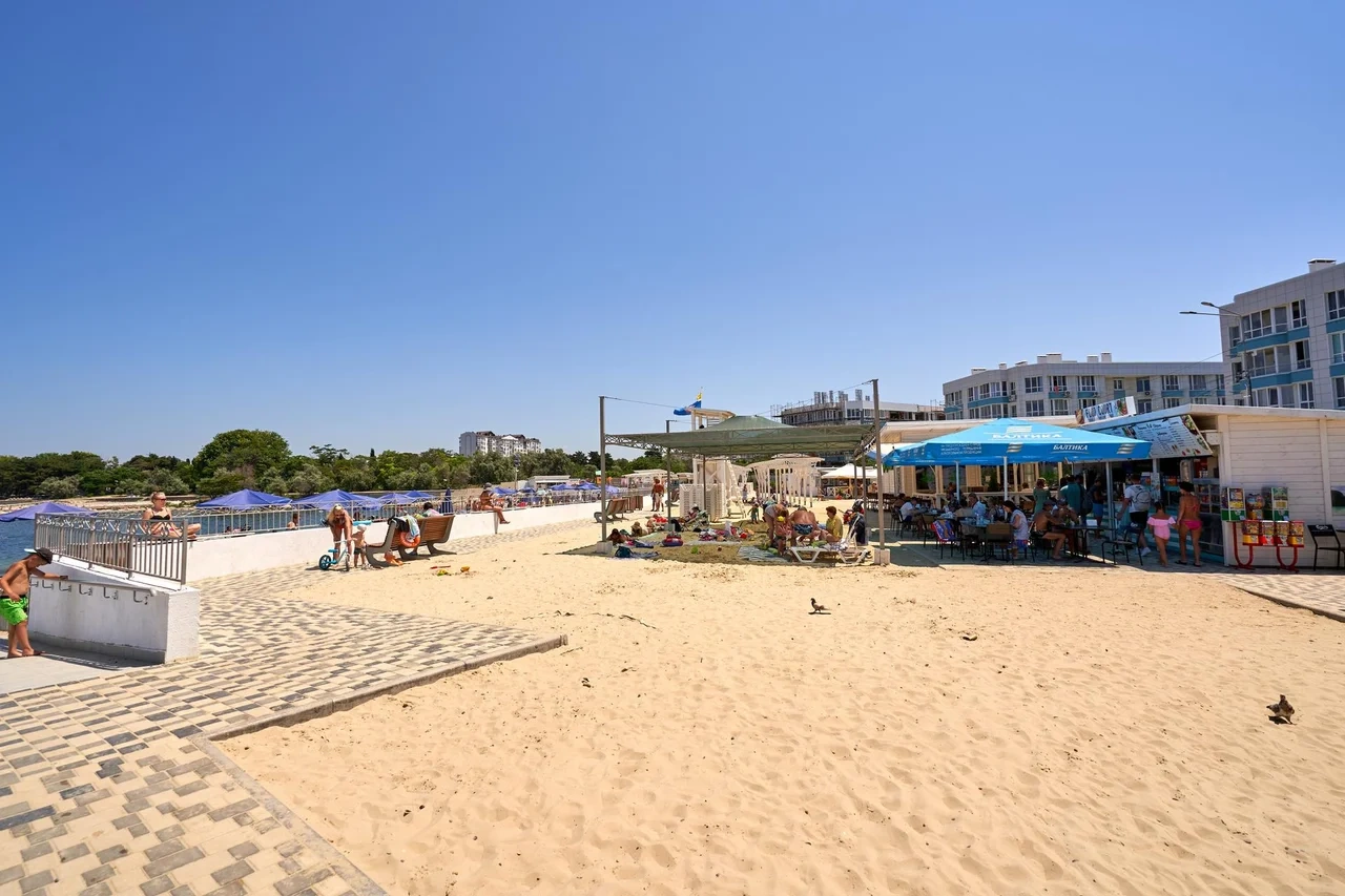 Наш жилой комплекс расположен в первой линии от моря, в развитом районе города на берегу бухты Круглая. Она защищена скальным мысом и скальным мелководьем, поэтому не подвержена штормовым волнам. Здесь всегда спокойное море. Сам комплекс имеет собственный выход на лучший в городе двухуровневый полностью оборудованный пляж. Вход в море удобен для детей и пожилых.
