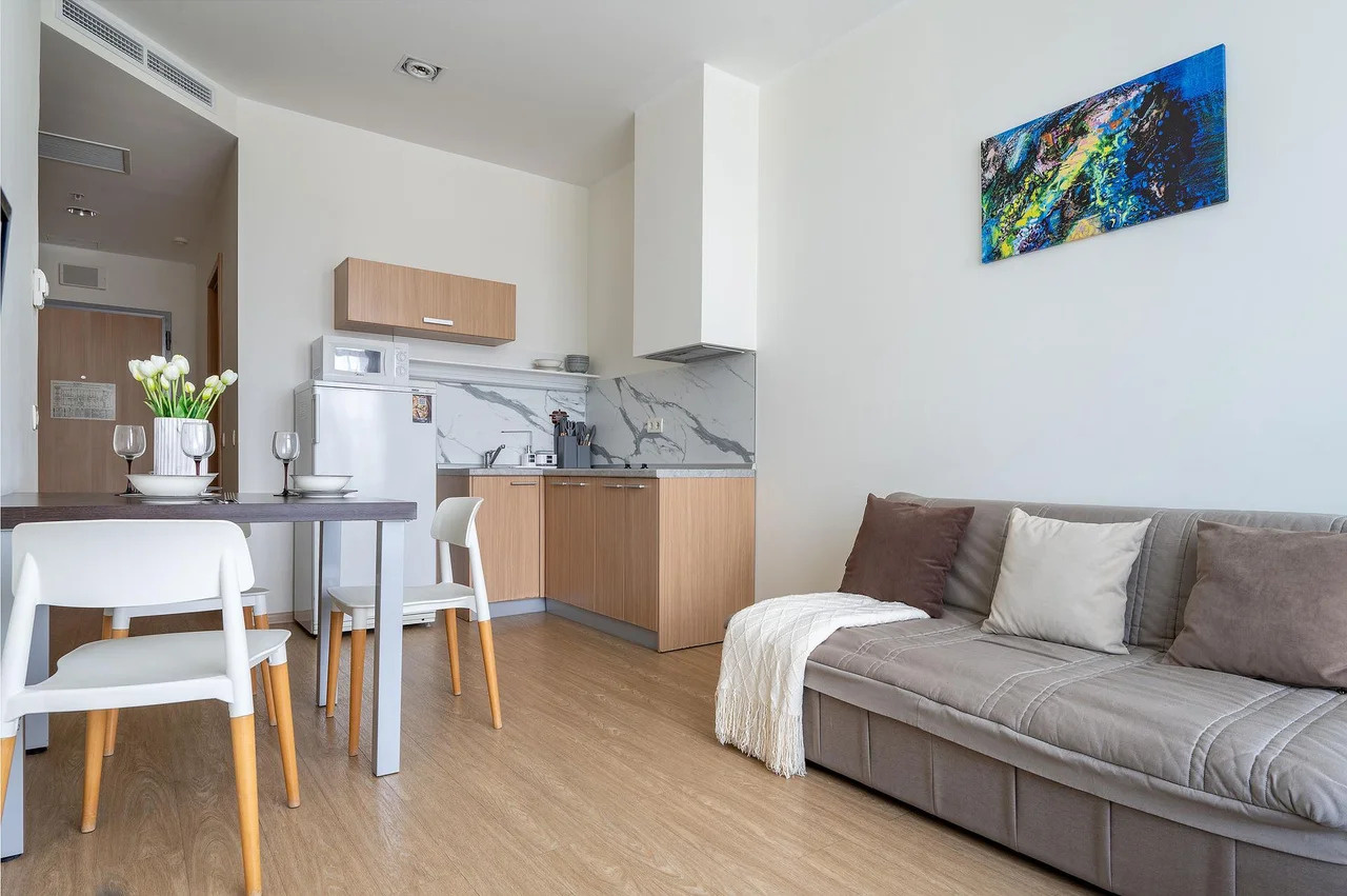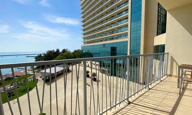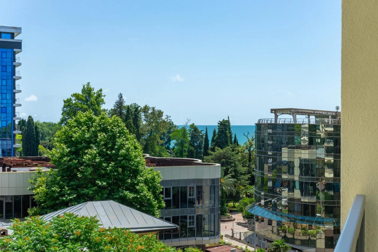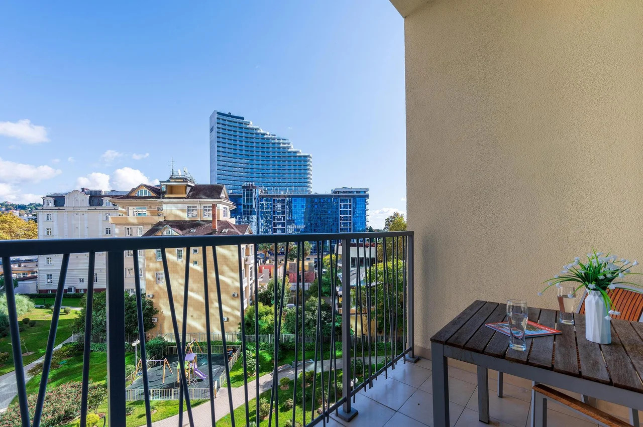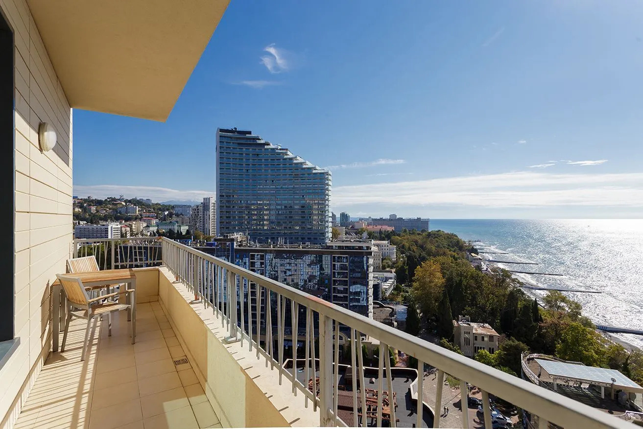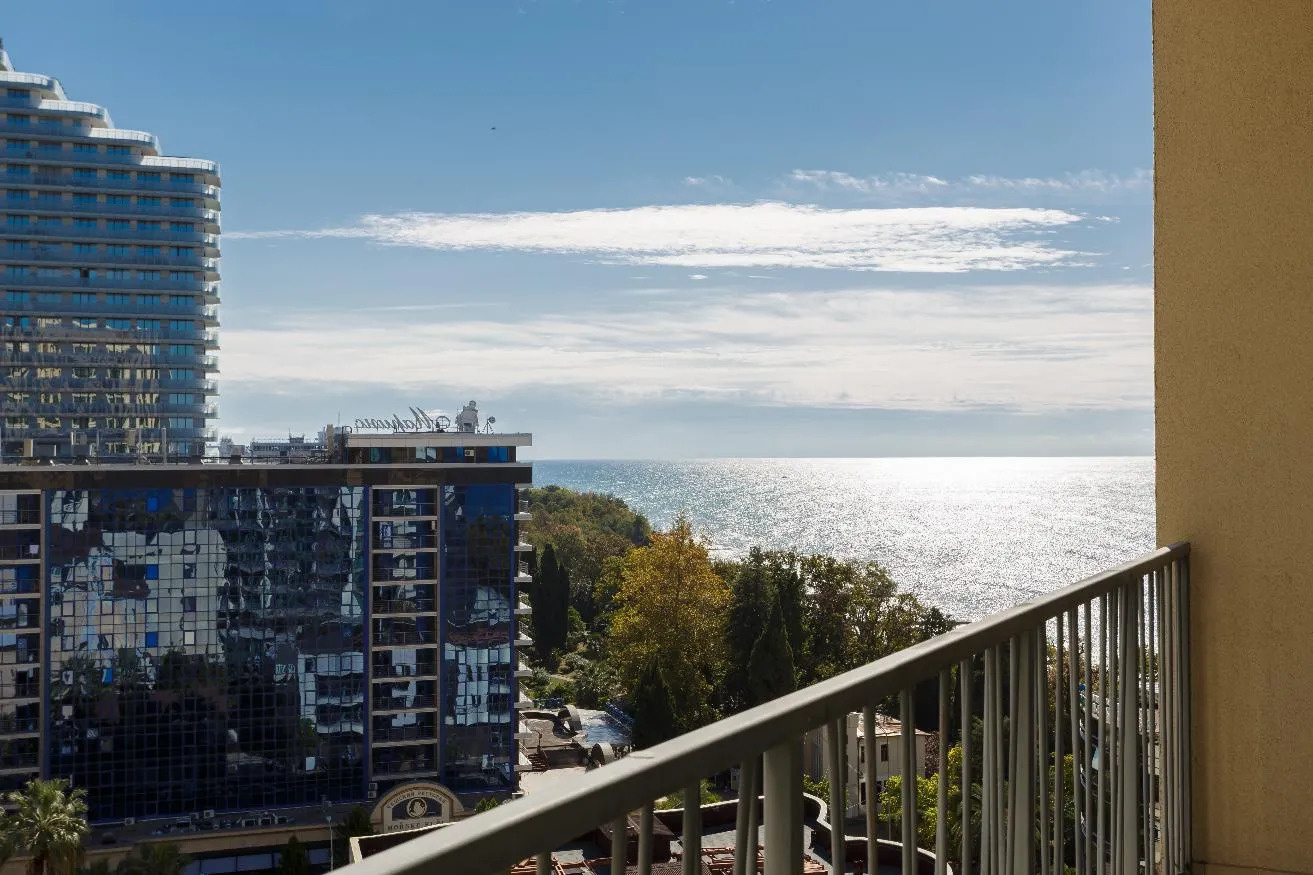 Место расположения супер. В апартаментах все необходимое есть из мебели и бытовой техники. Фактически - 2 комнаты, балкон с видом на море.
