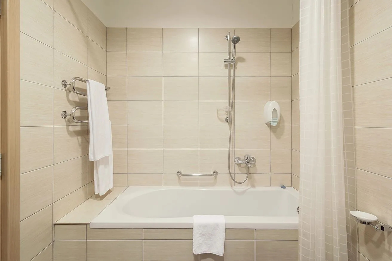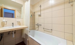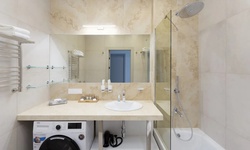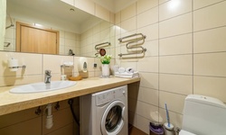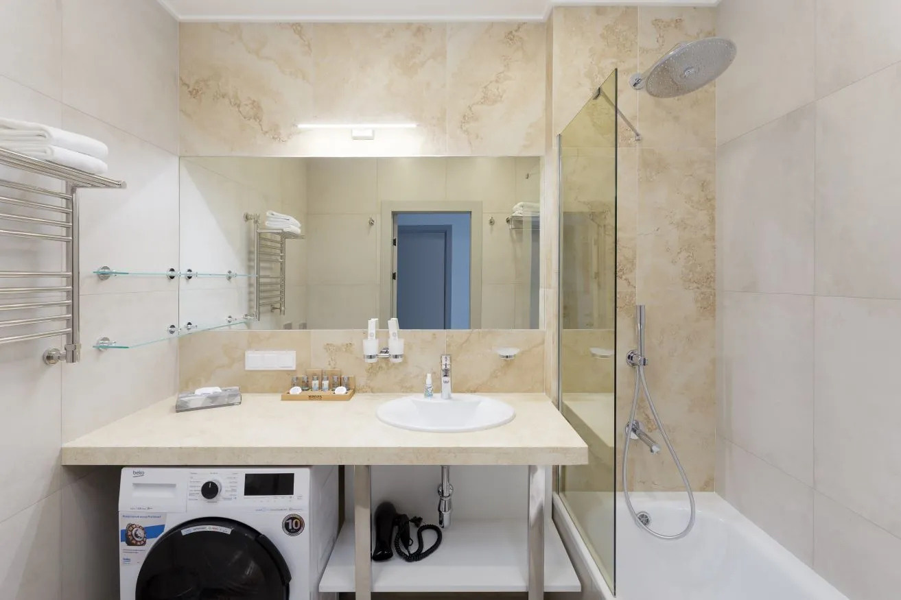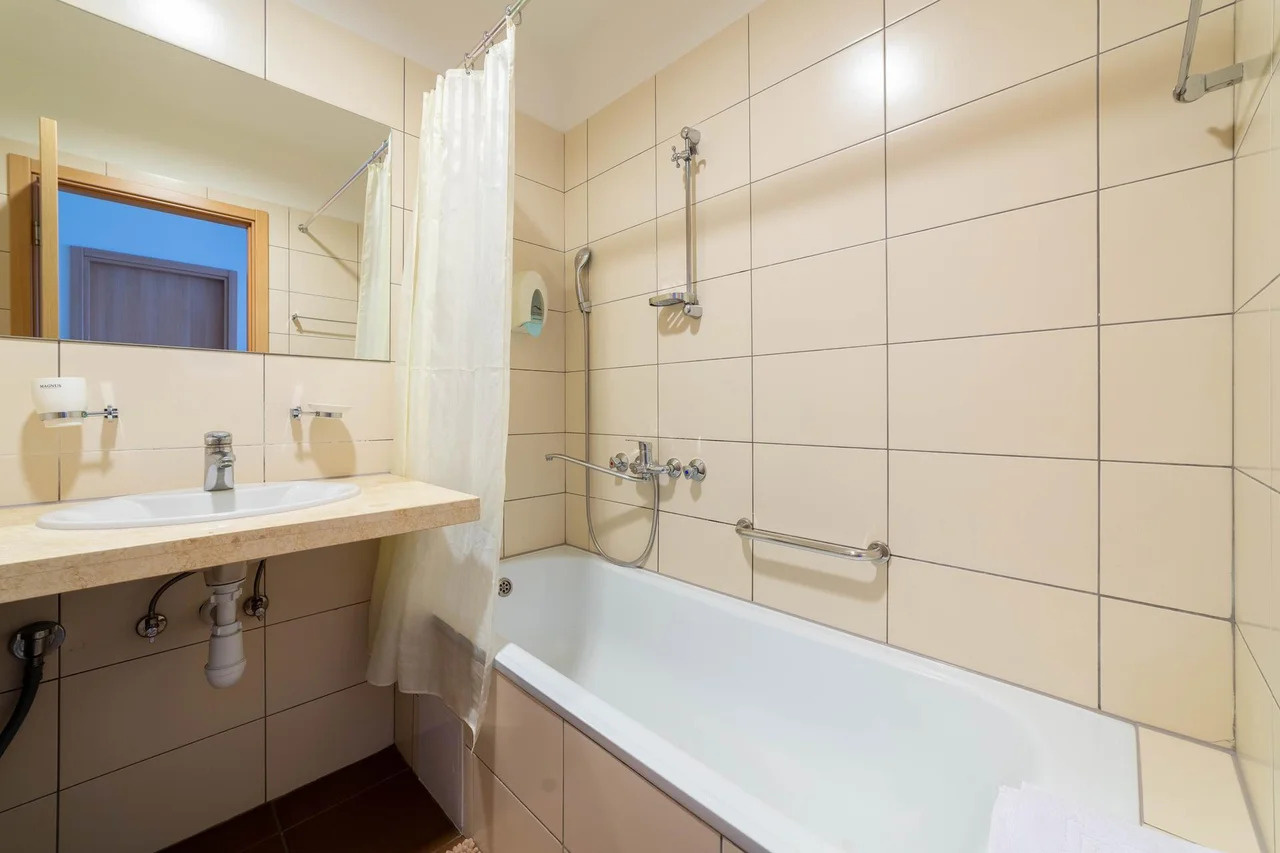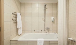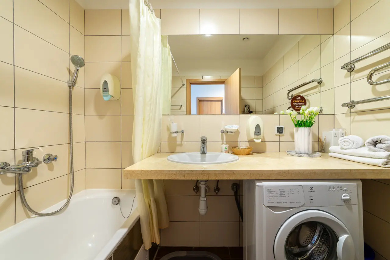 Кровать отличная!Бельё чистое и меняют регулярно.В ванной комнате всё было и техника вся исправно работала.