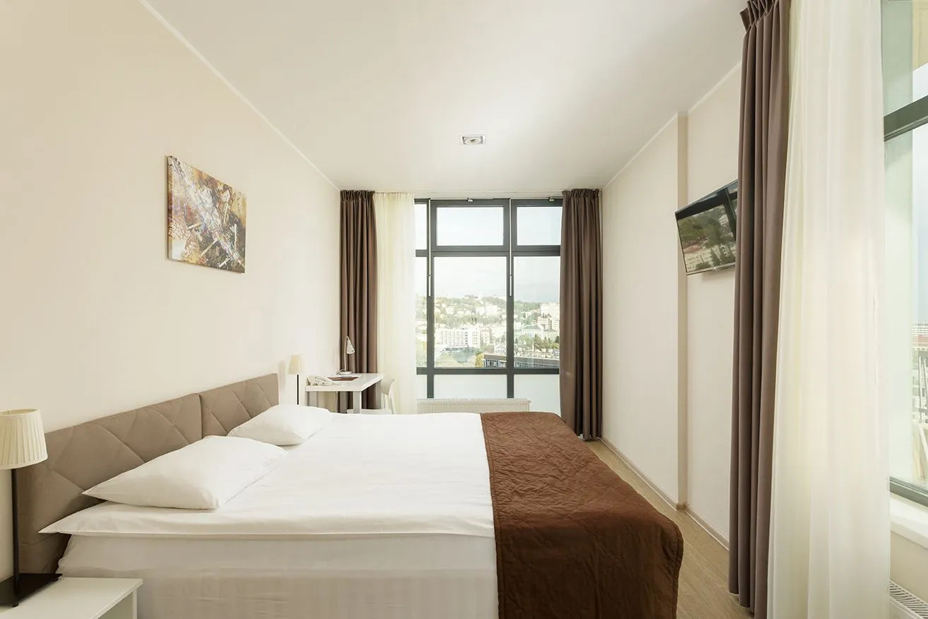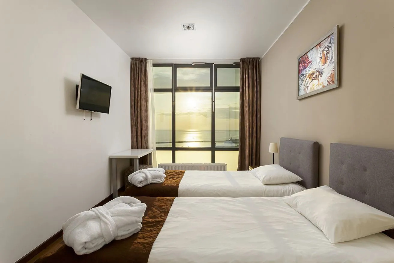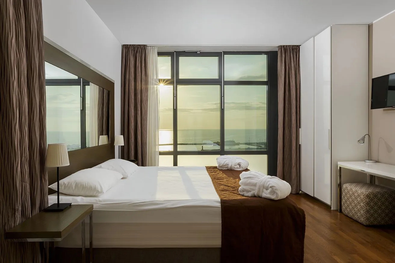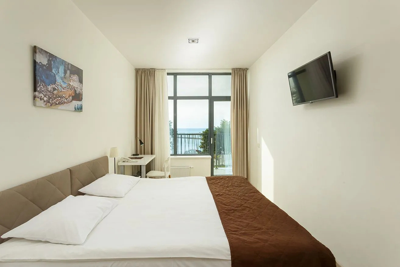 отличный удобный номер с видом на море. Просторно и комфортно. Единственным минусом стал слегка продавленный матрас.