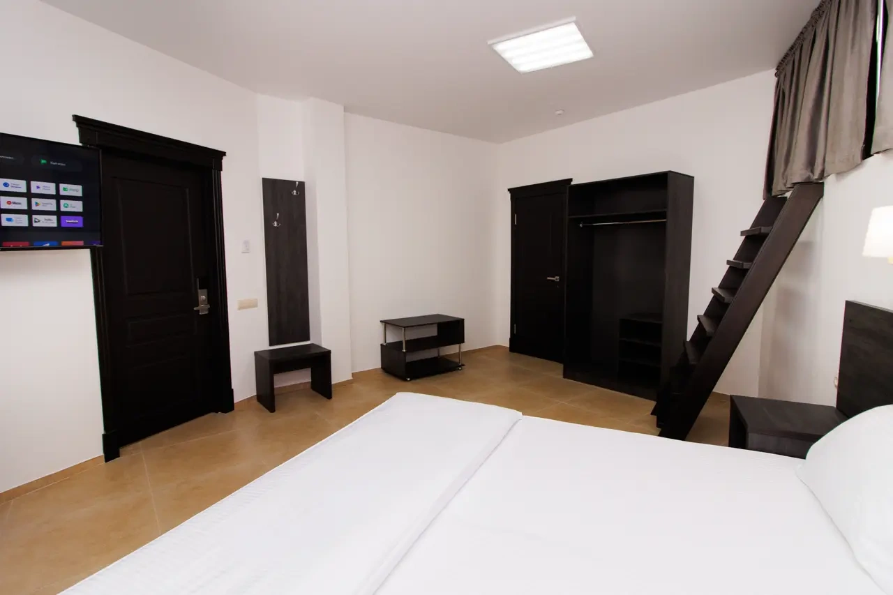 Новые номера в новых апартаментах Люди. Находятся в историческом центре города. В пешей доступности театры, музеи, набережная, банкоматы, магазины, кафе. В номере присутствует кондиционер,центральное отопление,телевизор, холодильник, электрочайник. Душ и санузел совмещены. В номере исключительно lamplight. На всей территории бесплатный Wi-Fi.