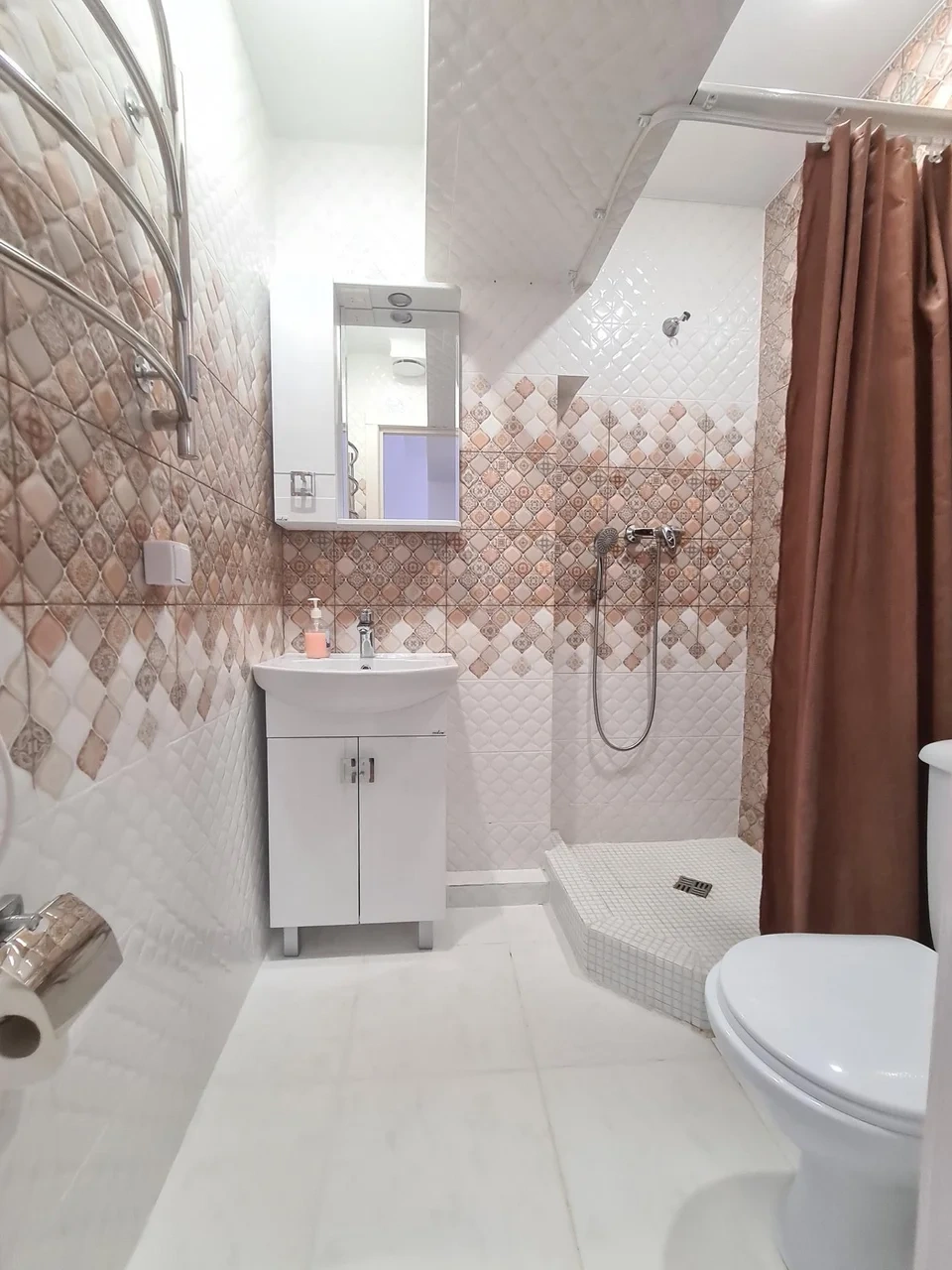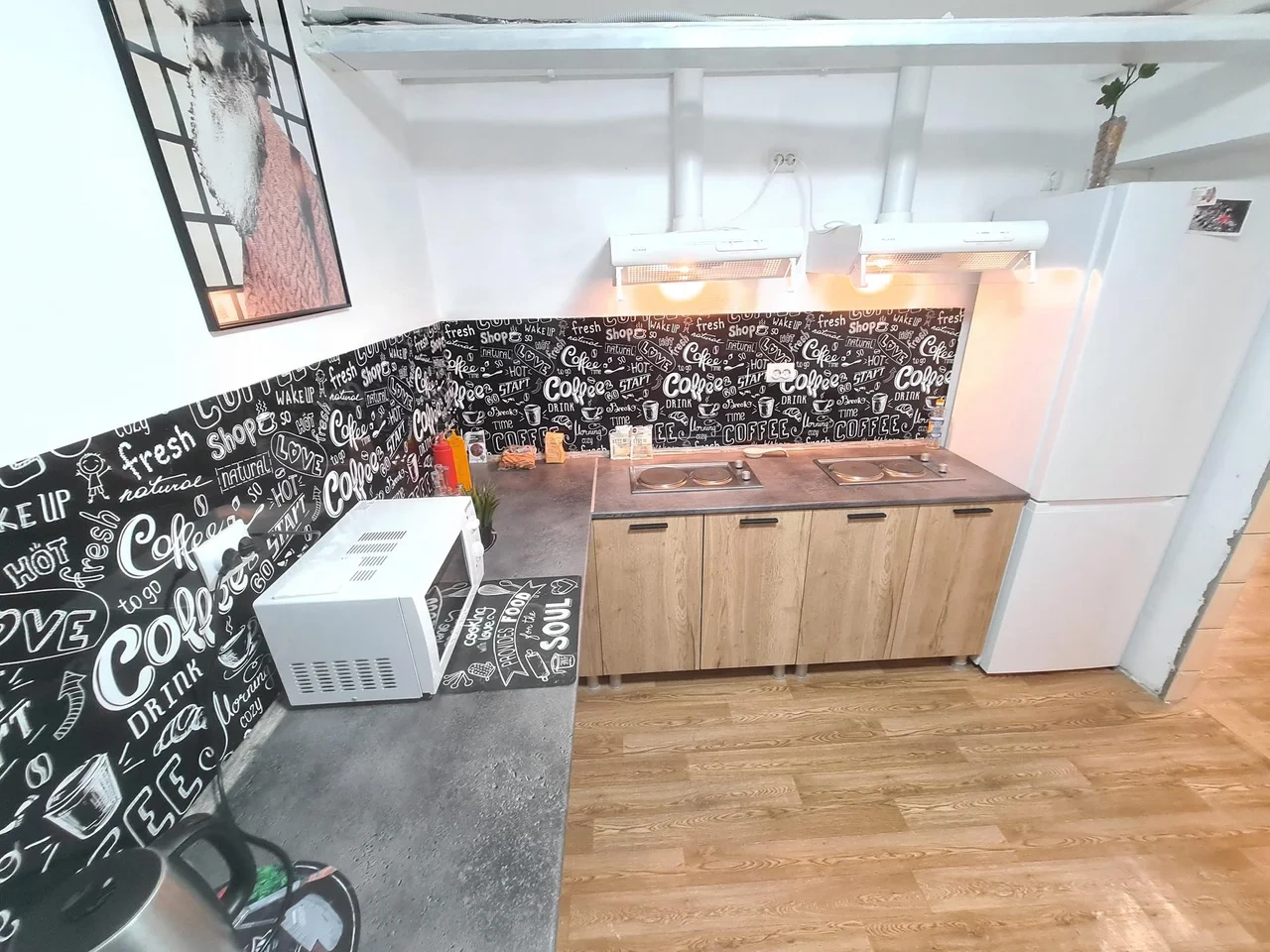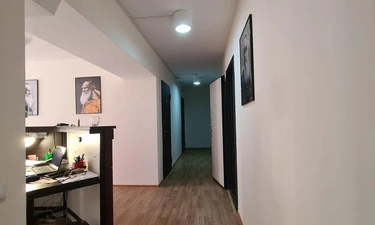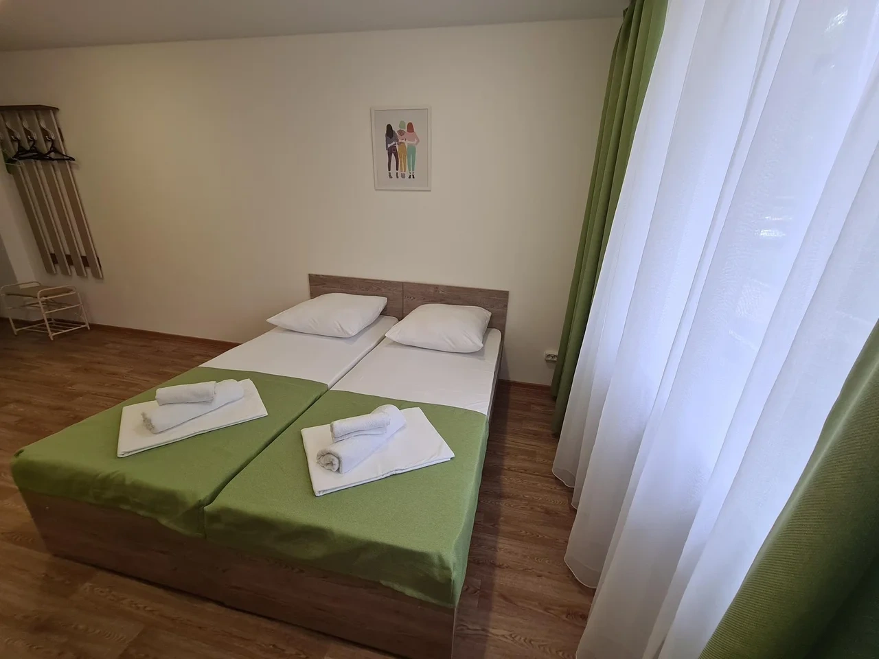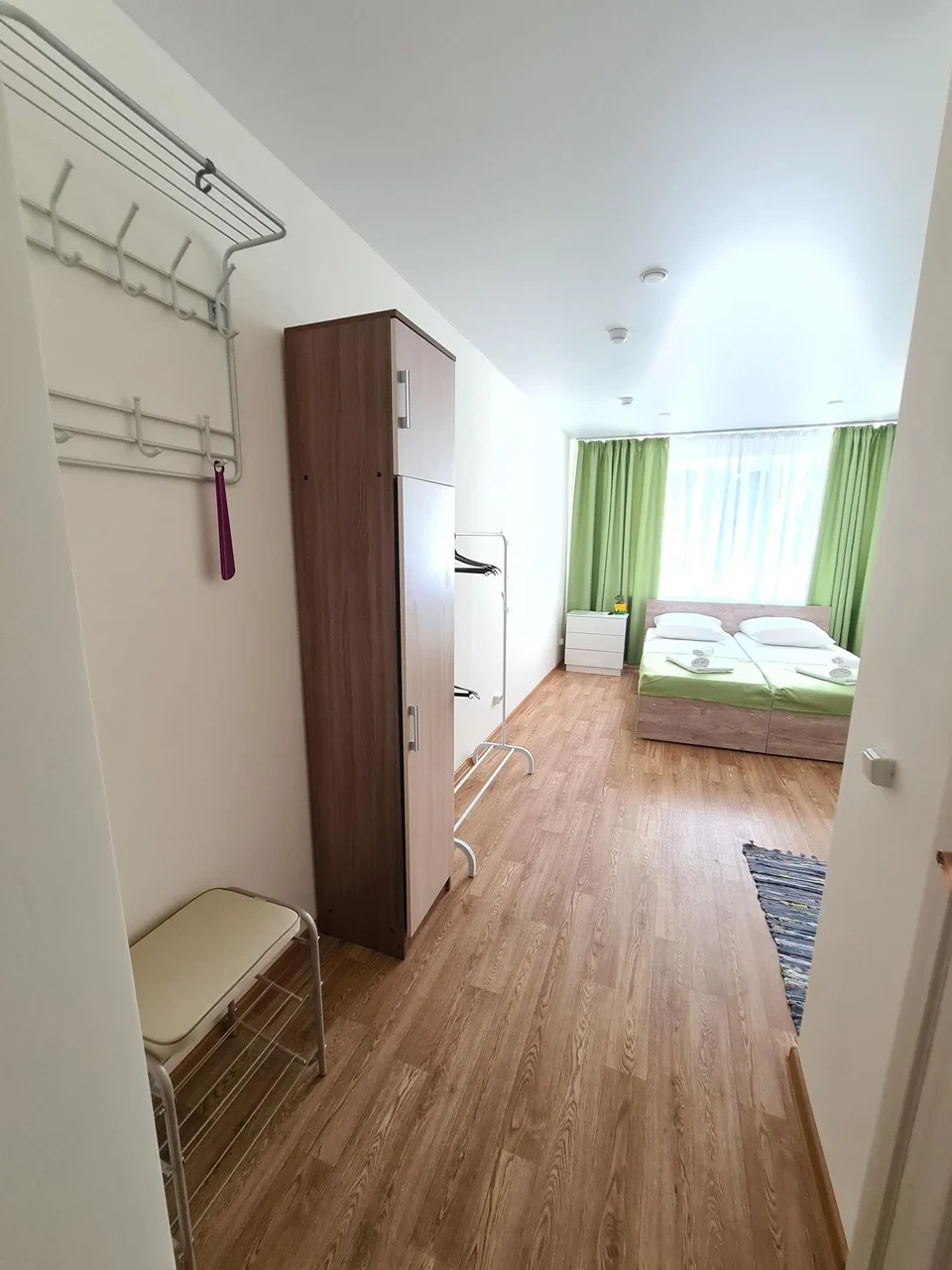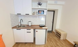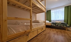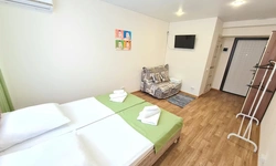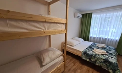 В номере находится душ и санузел, Кухня и обеденная зона находятся отдельно. Трехместный номер находится на 1 этаже.