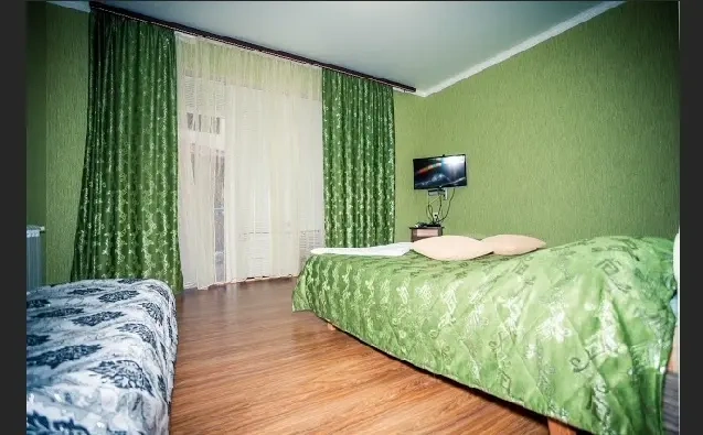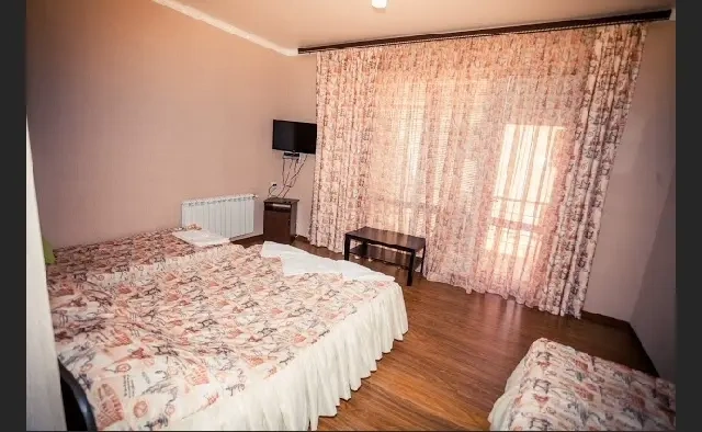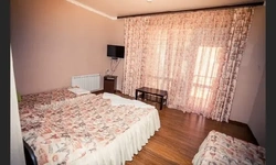 каждый номер оснащен : - двуспальная кровать - две складные односпальные кровати - цветной телевизор + спутниковое ТВ - холодильник - чайник - сплит-система - санузел с душем, с постоянной горячей и холодной водой - шкаф и другая необходимая мебель