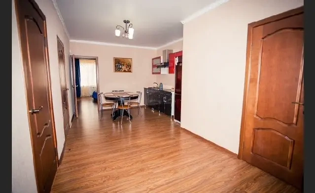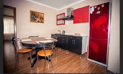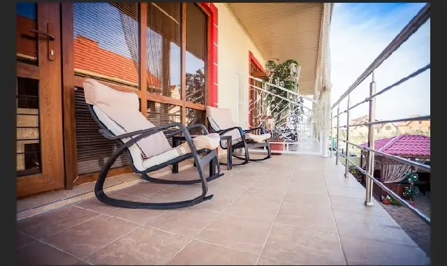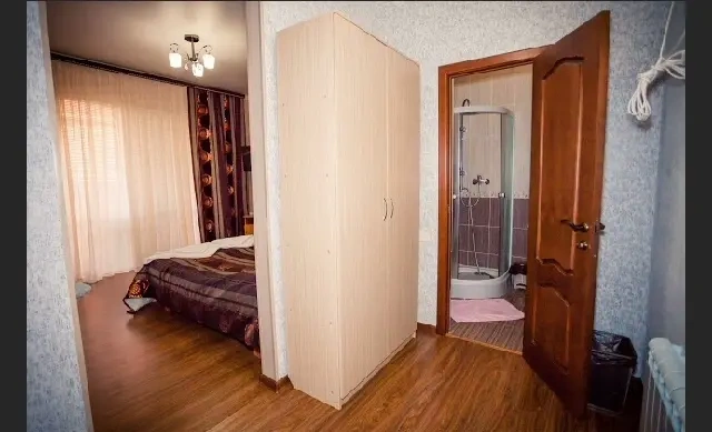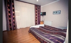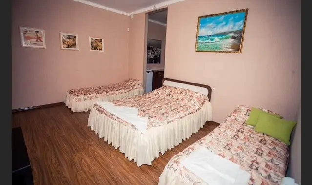 3-х комнатный номер (большая комната, 2 маленьких, кухня-столовая, санузел) общей площадью 64м2 + терраса 30м2 оснащен : - большой диван - три односпальные кровати - 3 цветных телевизора + спутниковое ТВ+ эфирное ТВ - холодильник, электроплита, чайник, кухонная мебель и принадлежности - сплит-система - санузел с душем, с постоянной горячей и холодной водой - шкаф и другая необходимая мебель
