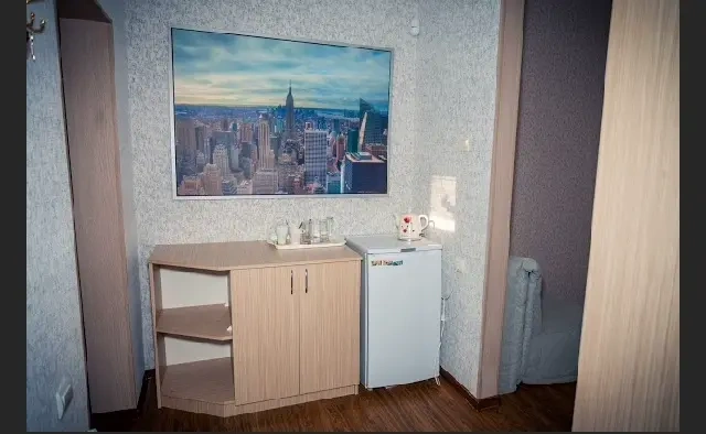 Номер оснащен шкафчиком, полками, вешалкой для вещей, подставкой для обуви, холодильником, жк-телевизором со спутниковым приемником, сплит-системой, отдельным санузлом (душевая кабина, умывальник, унитаз, фен, горячая и холодная вода), раскладным двуспальным диваном, необходимыми постельными принадлежностями, достаточным количеством полотенец.